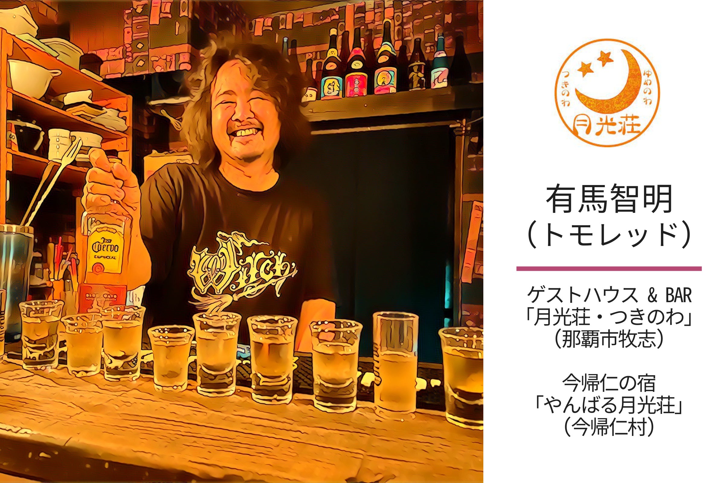発起人、面川達郎と初めて会ったのは2018年ごろ。当時大学生で、東京から沖縄まで仲間とバイク旅の途中にふらりと選んでくれた宿が自分の経営するゲストハウス「月光荘」でした。
