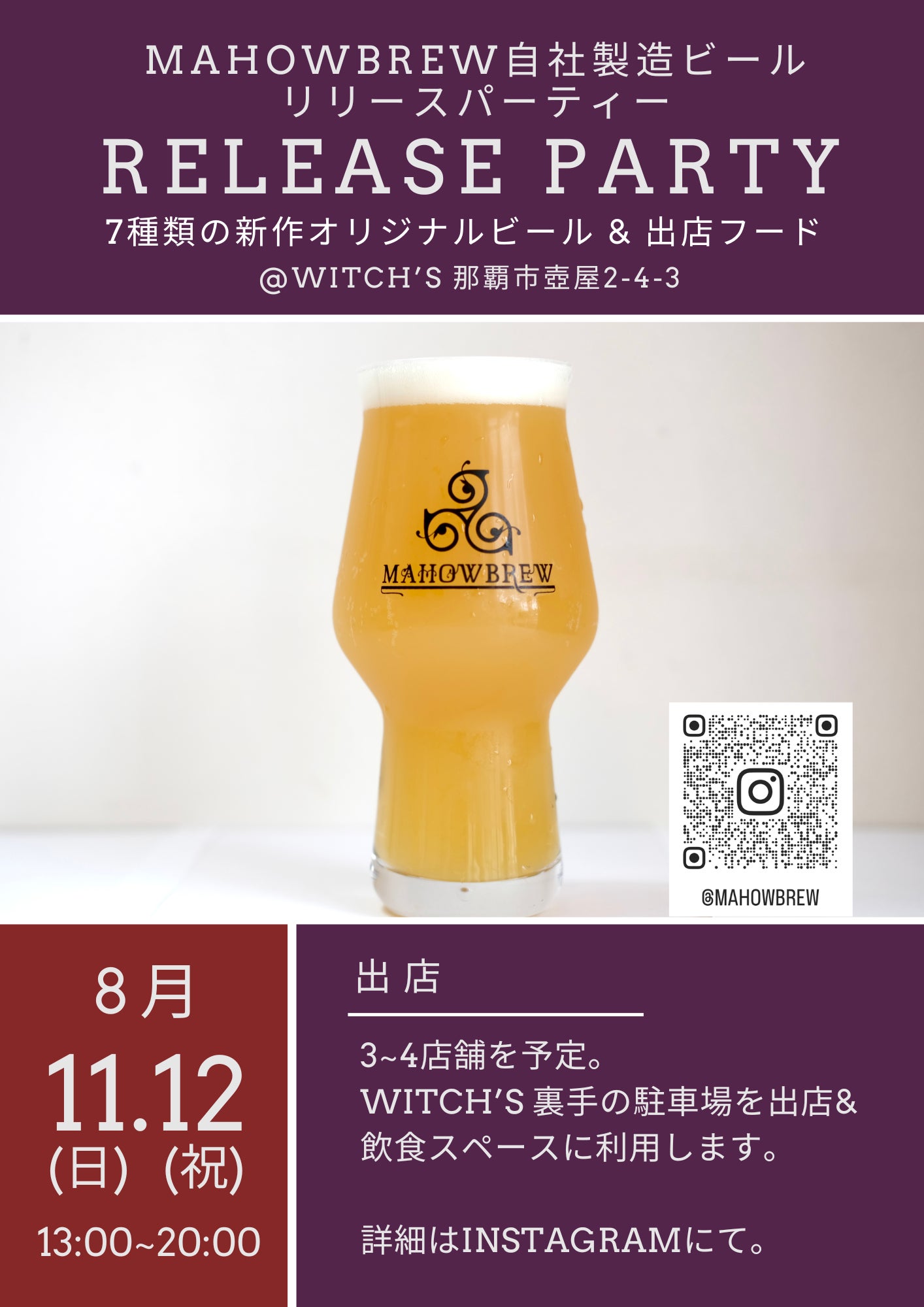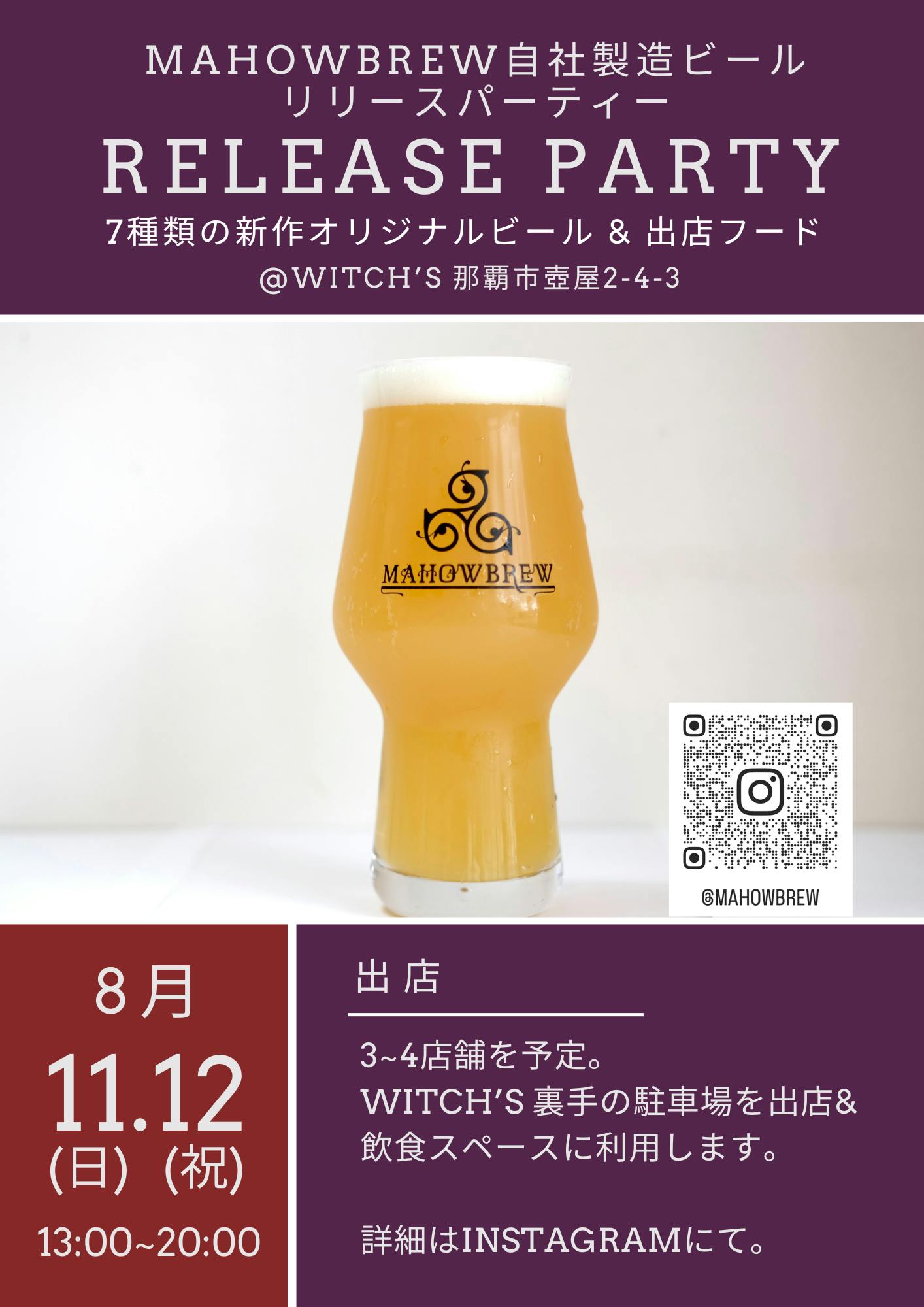 MAHOWBREWのビールは、直営店Witch'sで提供されるだけでなく、沖縄県内のビアバーや、さらに県外にも流通する予定です。