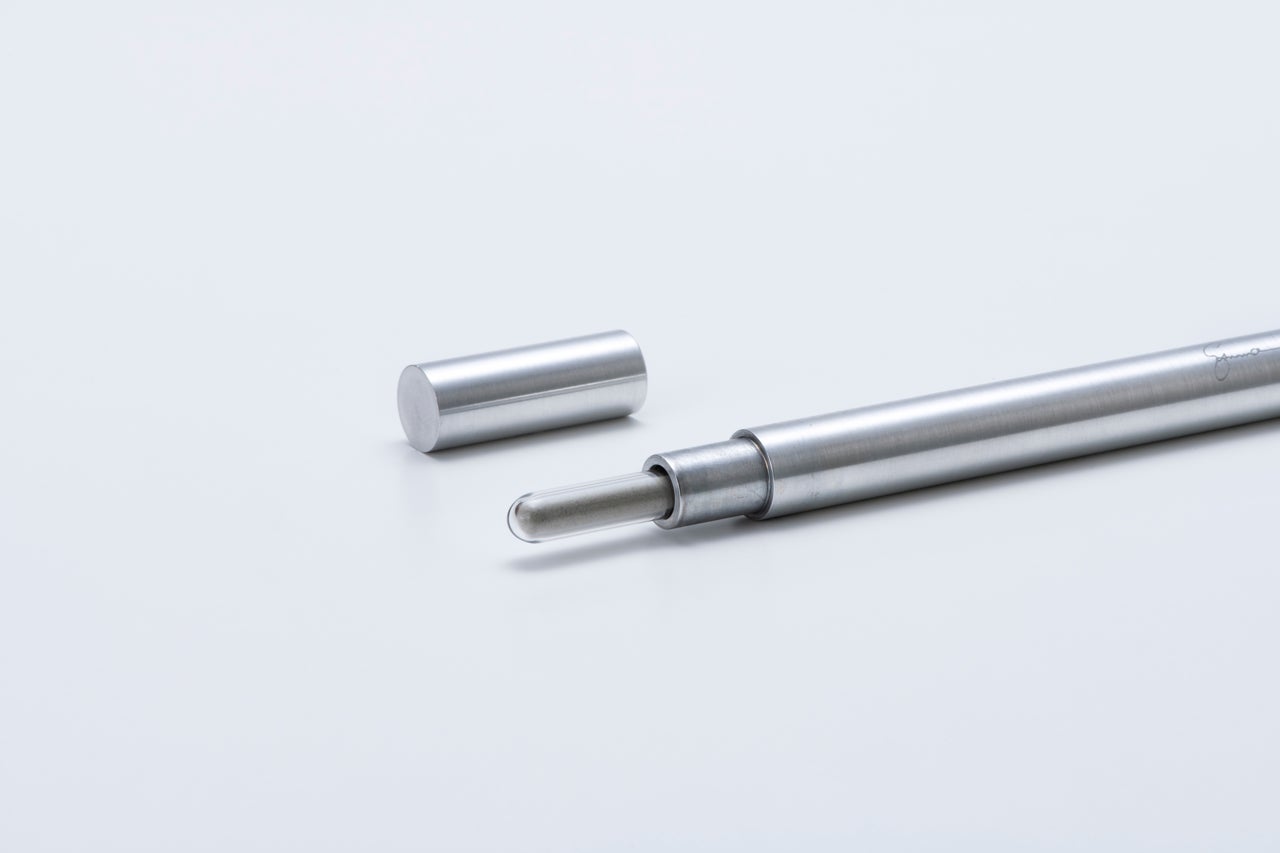 海底の砂とバイオマスカーボンを入れたトング式のマドラーとステンレスのボトルとコースターが内蔵されています。この組み合わせによって水を変化させることができる力を研究し続けた結果、それを突き止めることができました。