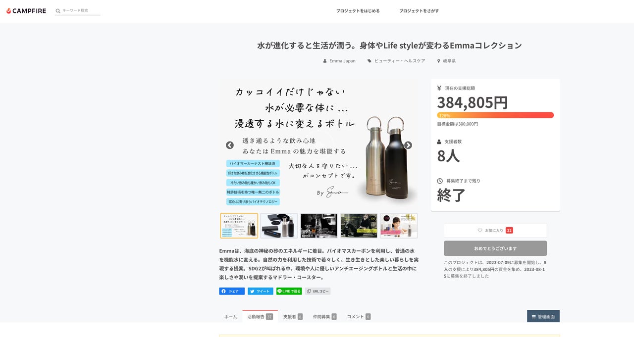 このプロジェクトは、2023/07/09に募集を開始し、 8人の支援により 384,805円の資金を集め、 2023/08/15に募集を終了しました