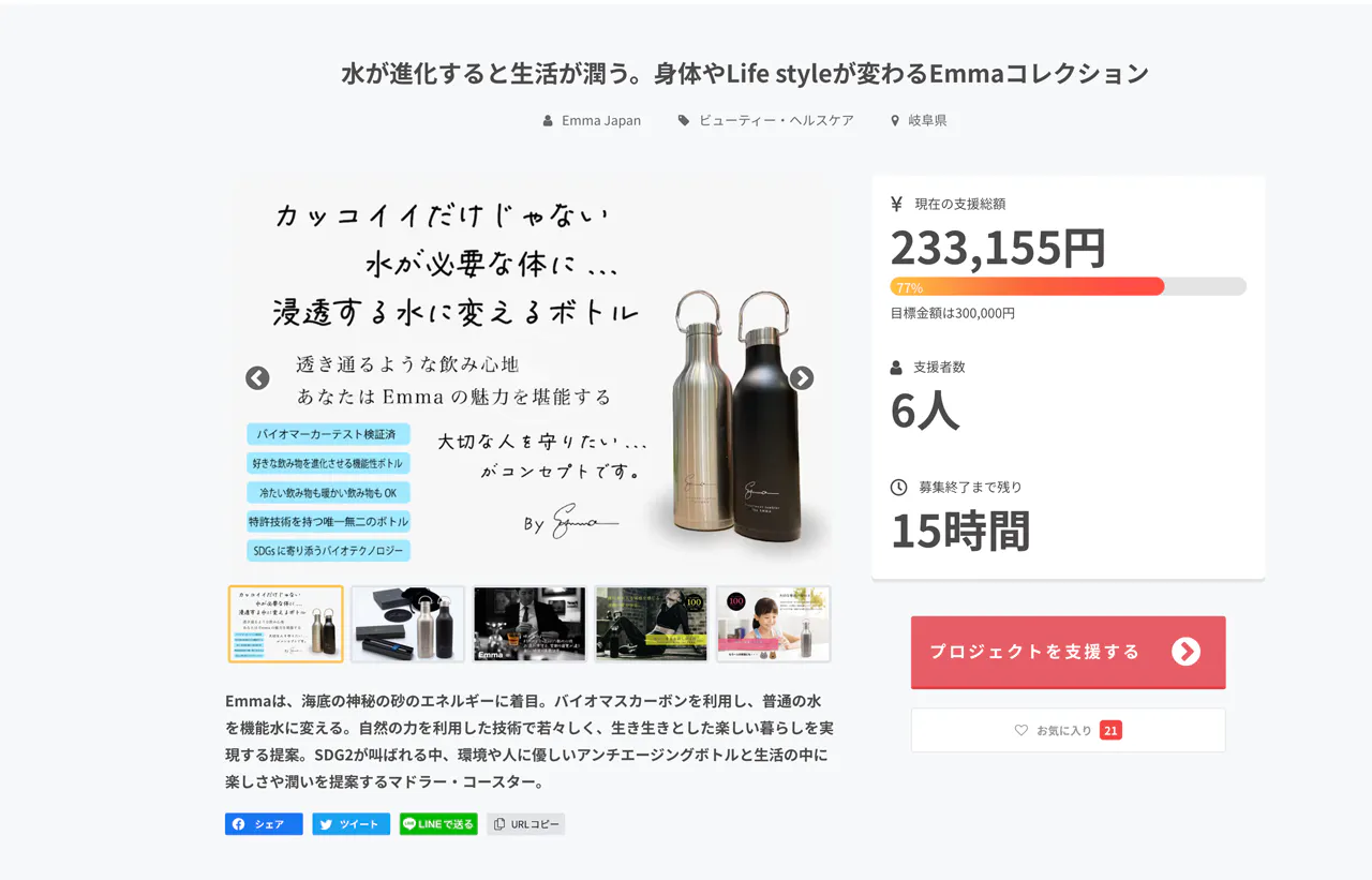 後15時間を切りました。後7万円で目標額に行きます。SDGsが叫ばれる中、ただの水筒じゃない人生100年時代の未来の水筒です。是非、この自然の科学の原理をご理解いただき