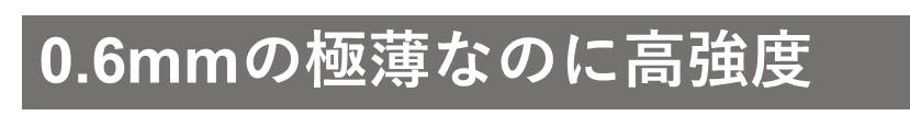 本体シートは約0.6mmと極薄なのに驚くほど強度が有ります。さまざまな使用環境を想定して「引き裂き強度」も高めました。