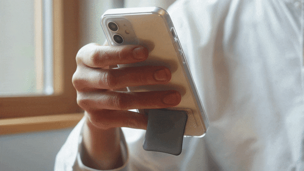 SYANTOの取り付け方法はスマホケースを外し、充電口に通して、スマホ本体もしくはケースに貼り付けるだけ。SYANTOはどんなスマホユーザーであっても排除しない、真にインクルーシブなデザインを目指しています。できるだけわかりやすく、簡単に取り付けられるように配慮しています。又、SYANTOは粘着素材ではなく、吸着素材のため、何度でも貼り直しをすることができます。
