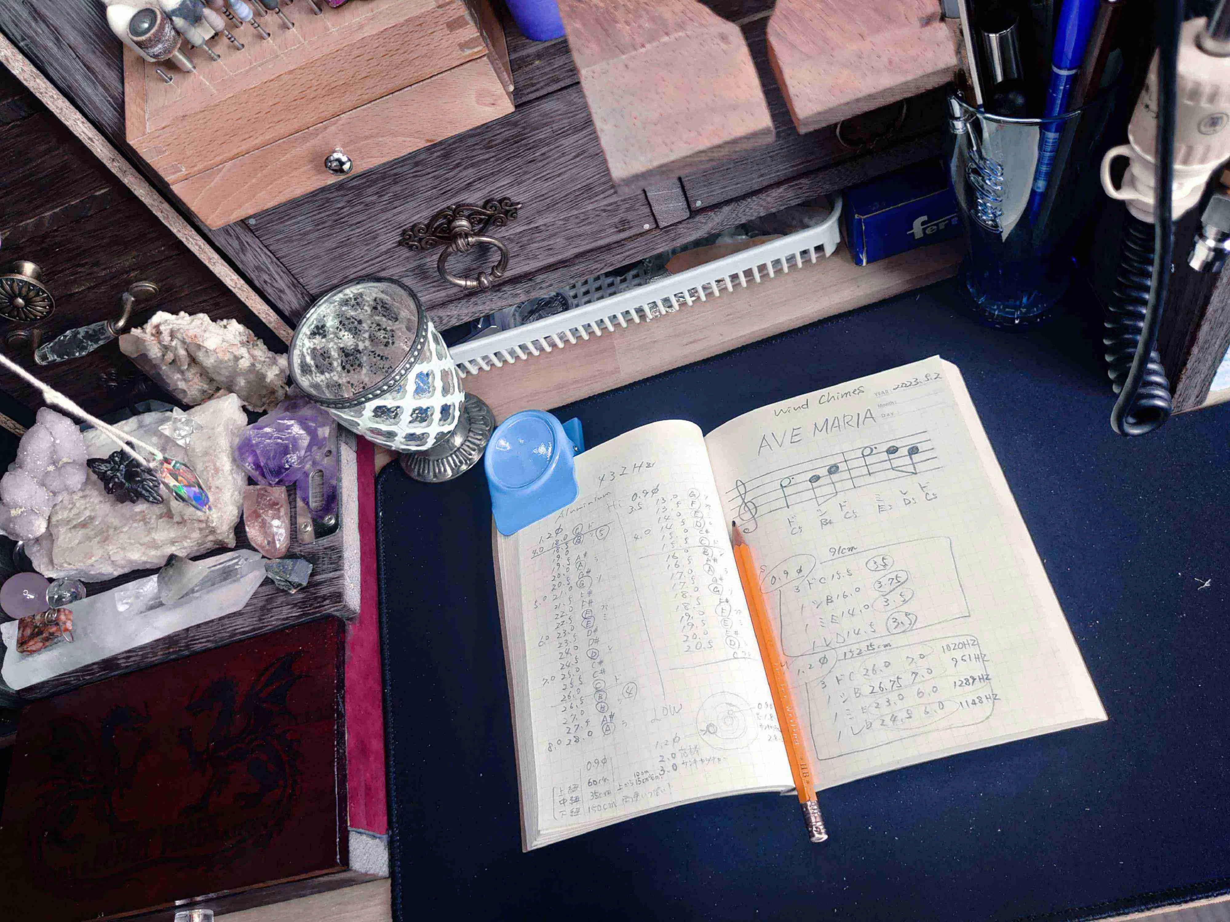 先日、私の記事などを拝見してくださる方へ向けた DIVINE CHIME™ / - AVE MARIA - を先行販売しました。こちらは、シューベルトの名曲「アヴェマリア」の音階をウインドチャイムにして、手創りにて一本一本432hzで調律してます。そしてこちらも、ウインドチャイムの音色棒に天然の水晶玉を組み合わせた作品です。御陰様で非常に好評で沢山の注文を戴きました!