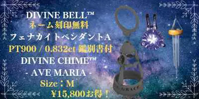 ⇒ DIVINE BELL™ 上部リング内側に御希望の刻印文字列がありましたら(英数字のみ20文字程度まで)彫ってお渡しします。地上にある振動数で最も出力が高いフェナカイトをペンダントにした作品で、ファセットカットが非常に素敵なブリリアンスとファイアが素晴らしい個体です。鑑別書と共にお渡しします。大好評戴いている DIVINE CHIME™ のMサイズと一緒にお届けします。