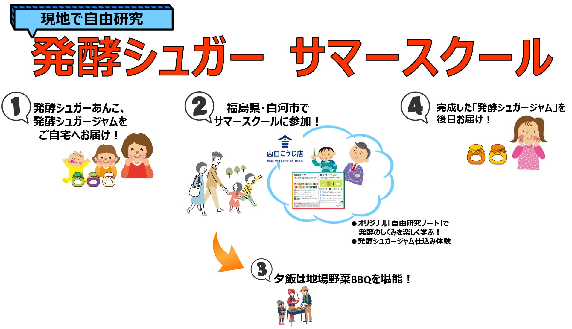 「発酵シュガーサマースクール」のプログラムを、福島県白河市の「山口こうじ店」に来て体験していただけるプランです。