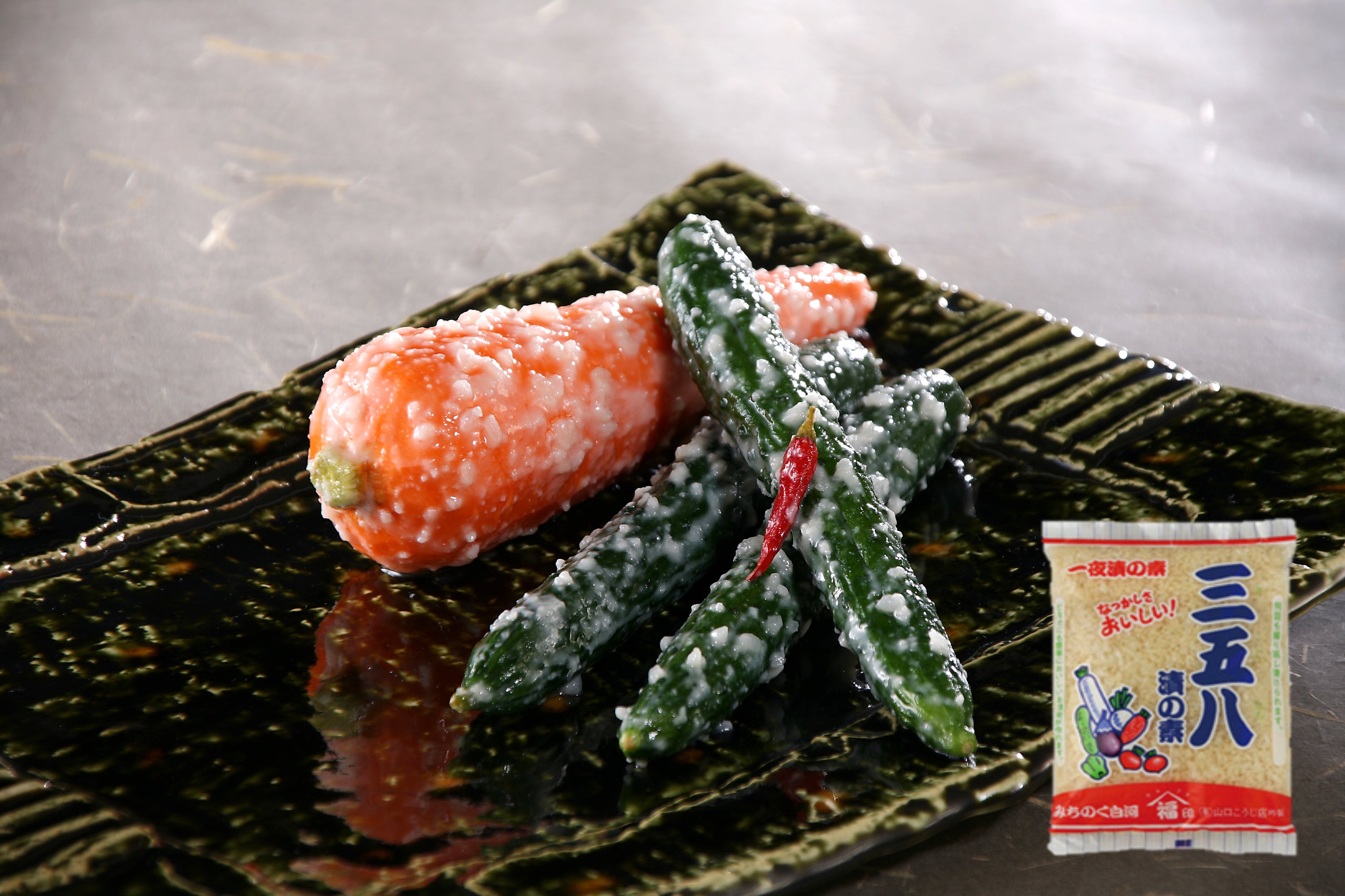 「三五八漬け」は、ご飯とこうじ、塩を「三・五・八」の割合で混ぜた素に、野菜を漬けたものです。江戸時代からある伝統食品で、野菜を余すことなく使い切れるうえに、健康にも良いんですよ。こうじの力が効いていてとても甘く、お子さんにもパクパク食べていただけるお味です。ご自宅でも手軽に発酵体験をしていただけます。
