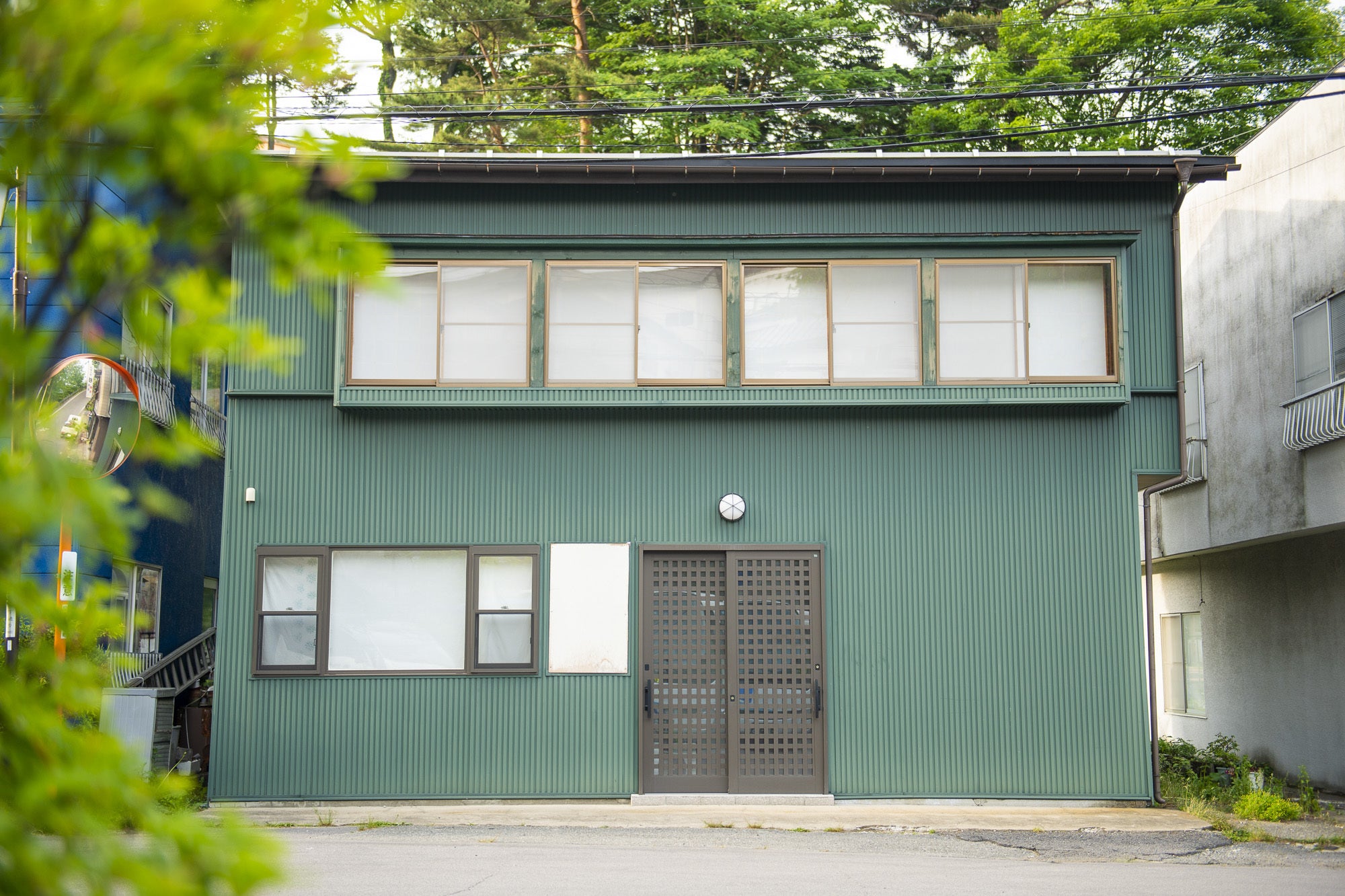緑の外観が特徴の一軒家。この建物の1階と2階のフロアを改修し、コワーキングスペースにします。