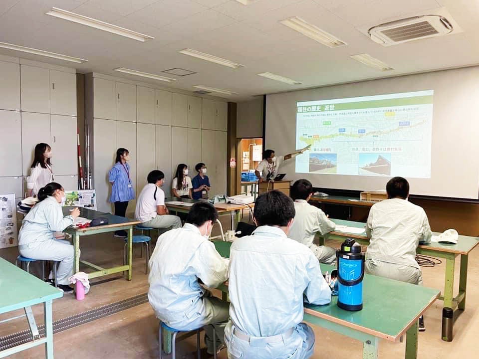 福住地区について大学生が高校生にレクチャーしています。そのために大学生がしっかり勉強し準備しました。