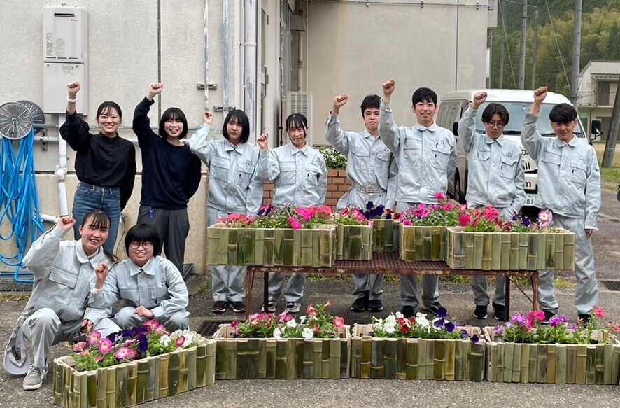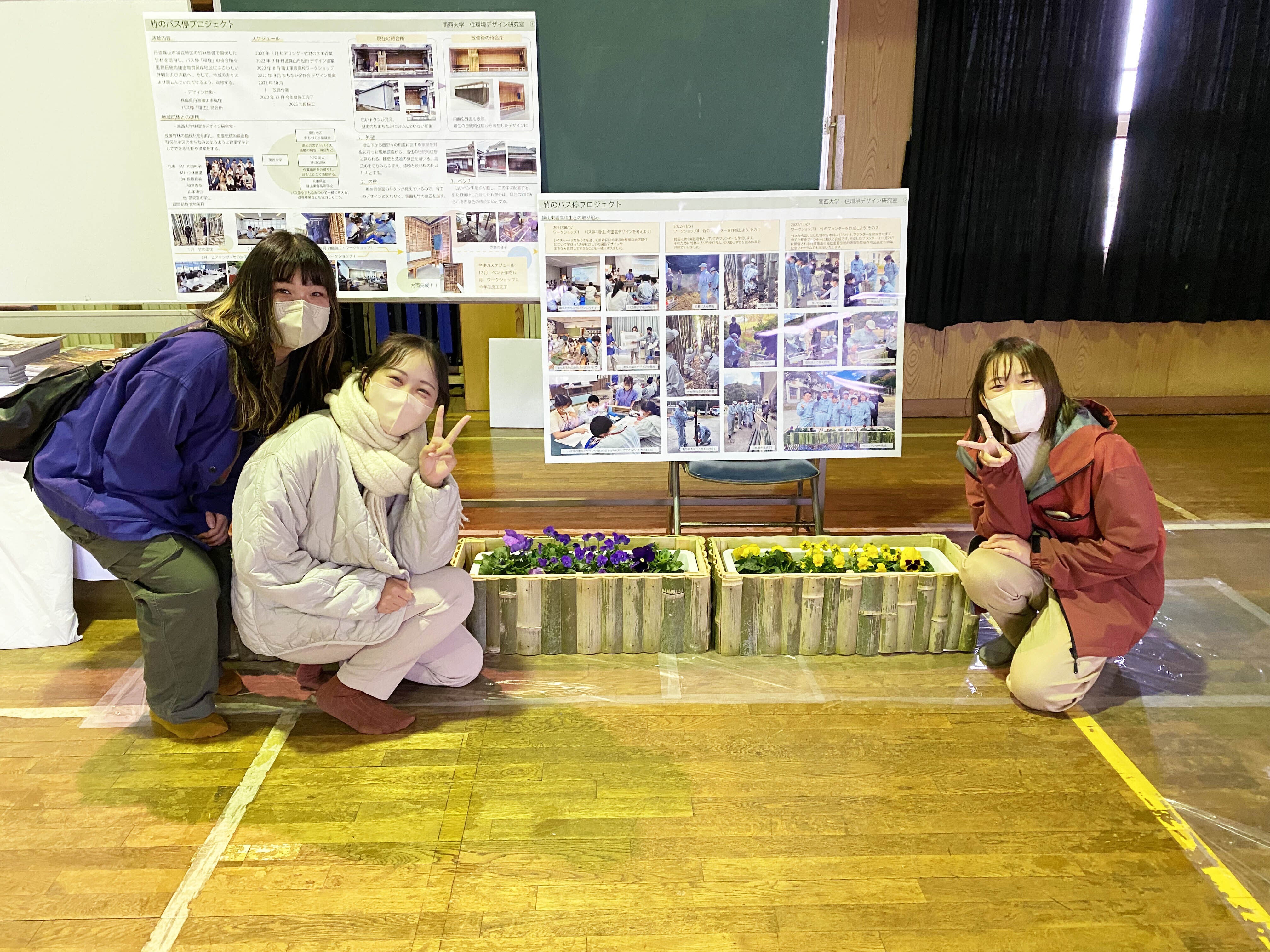 また私たちの活動は竹のフラワーポットの製作を通して篠山東雲高校生と大学生が協力し、まちなみデザインまで幅が広がりました。