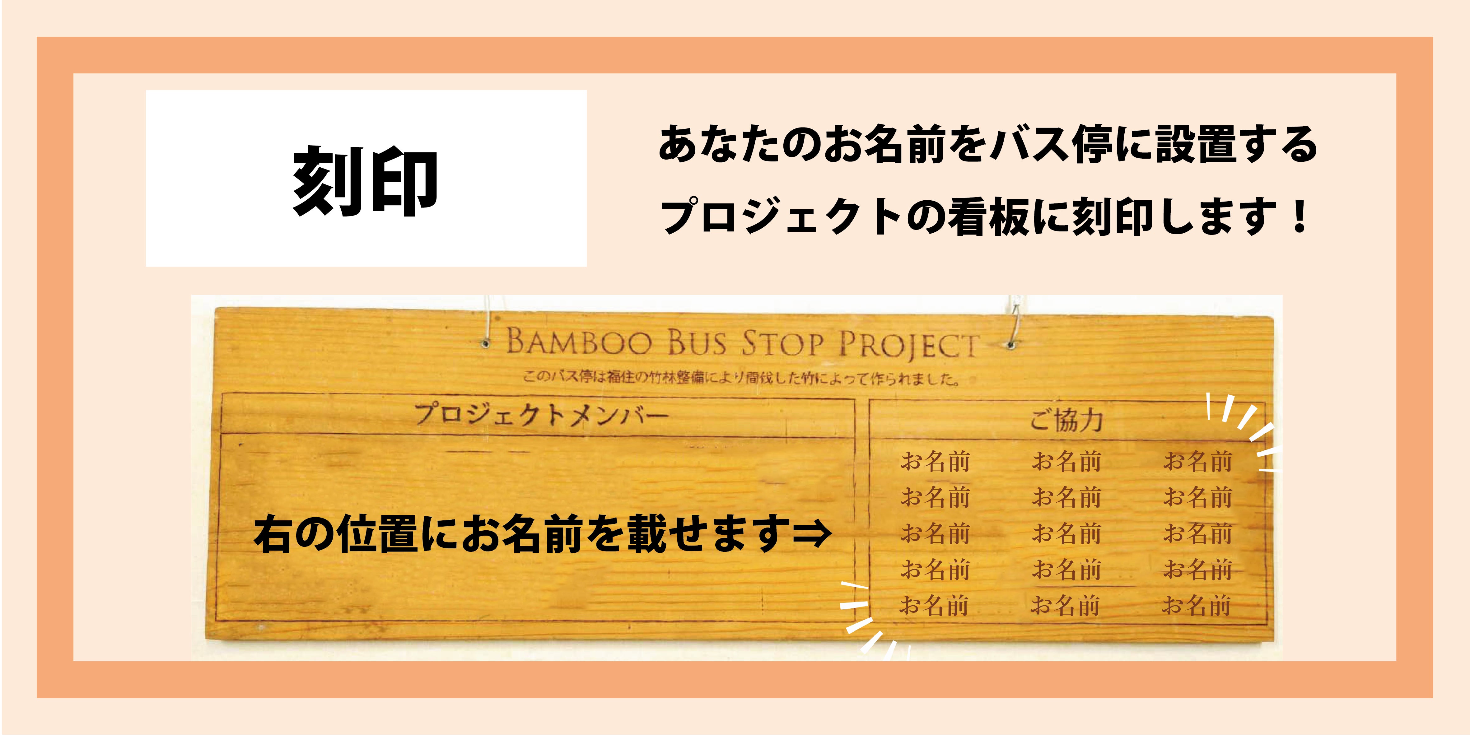 あなたのお名前をプロジェクトの看板に刻印いたします。看板はバス停完成以降ずっと飾られます。