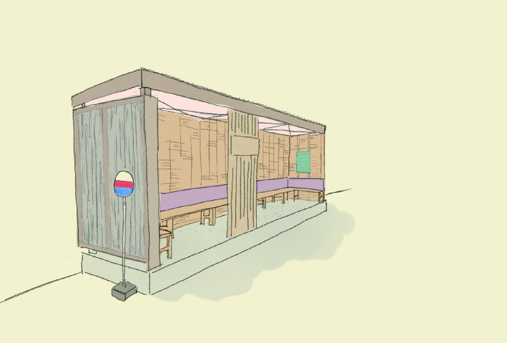⓵バス停「福住」待合所をさらにまちなみに適した姿へ
