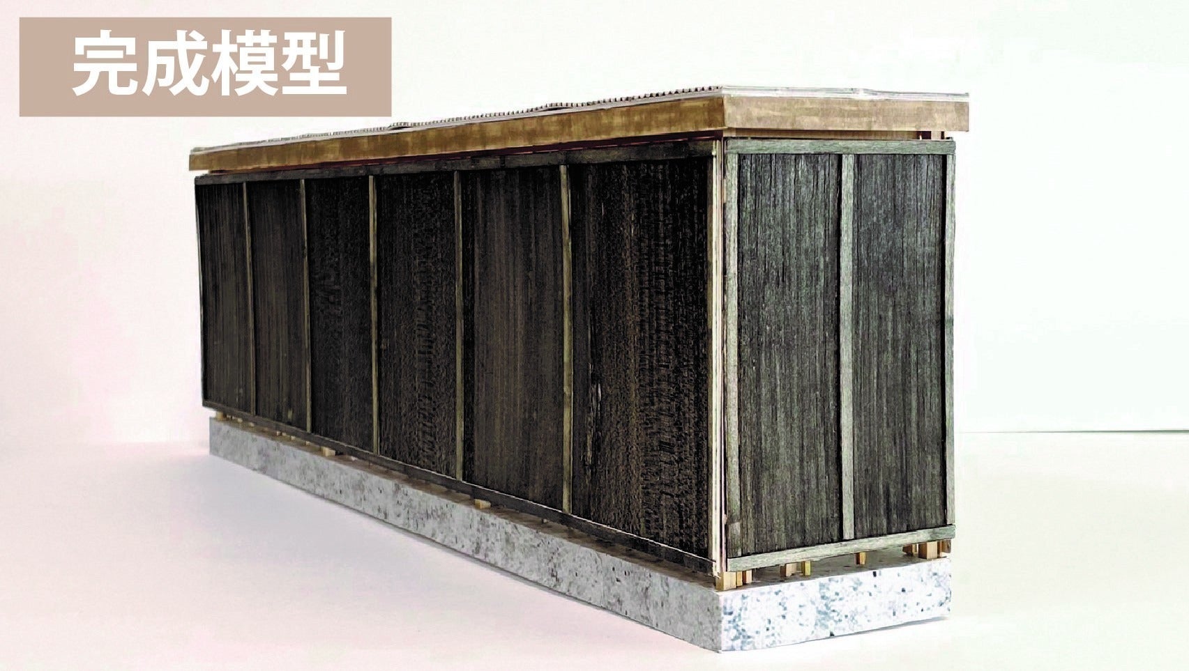 現在、内壁と背もたれの施工は完了していますが、ここからさらに外壁のトタンを焼杉板の意匠に改修するしていきます。