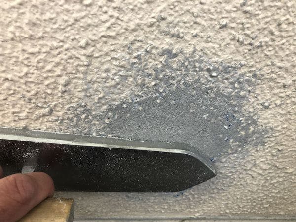 ポリ鏝でKモルタルを充填していきます。 金鏝仕上げとは異なり、施工面に凹凸ができることやムラが生じることもありません。 端部の段差も生じず、滑らかで美しい仕上がりが実現できます。 刷毛引きも不要で、簡単でスピーディーに仕上がるのも便利です。 なお、施工部周囲の凹凸が気になる際には、エポキシシンナーで刷毛引きすると収まりが良くなります。