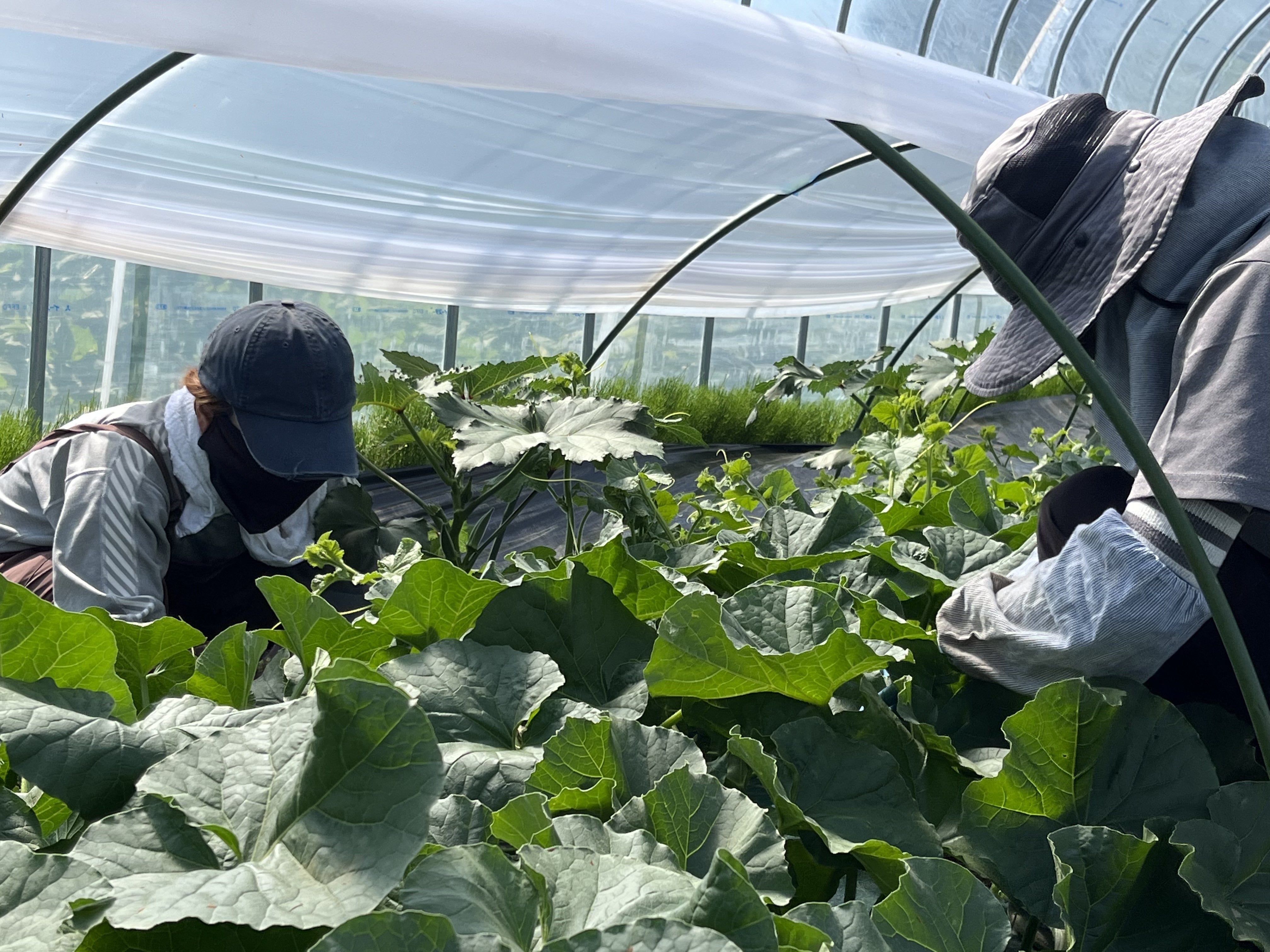 今年も例年どおり、ハウス栽培と露地栽培にてメロンを作っています!4月下旬から順次植えているメロンたちは、ぐんぐん成長しています。