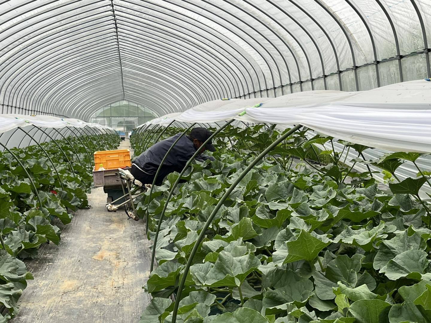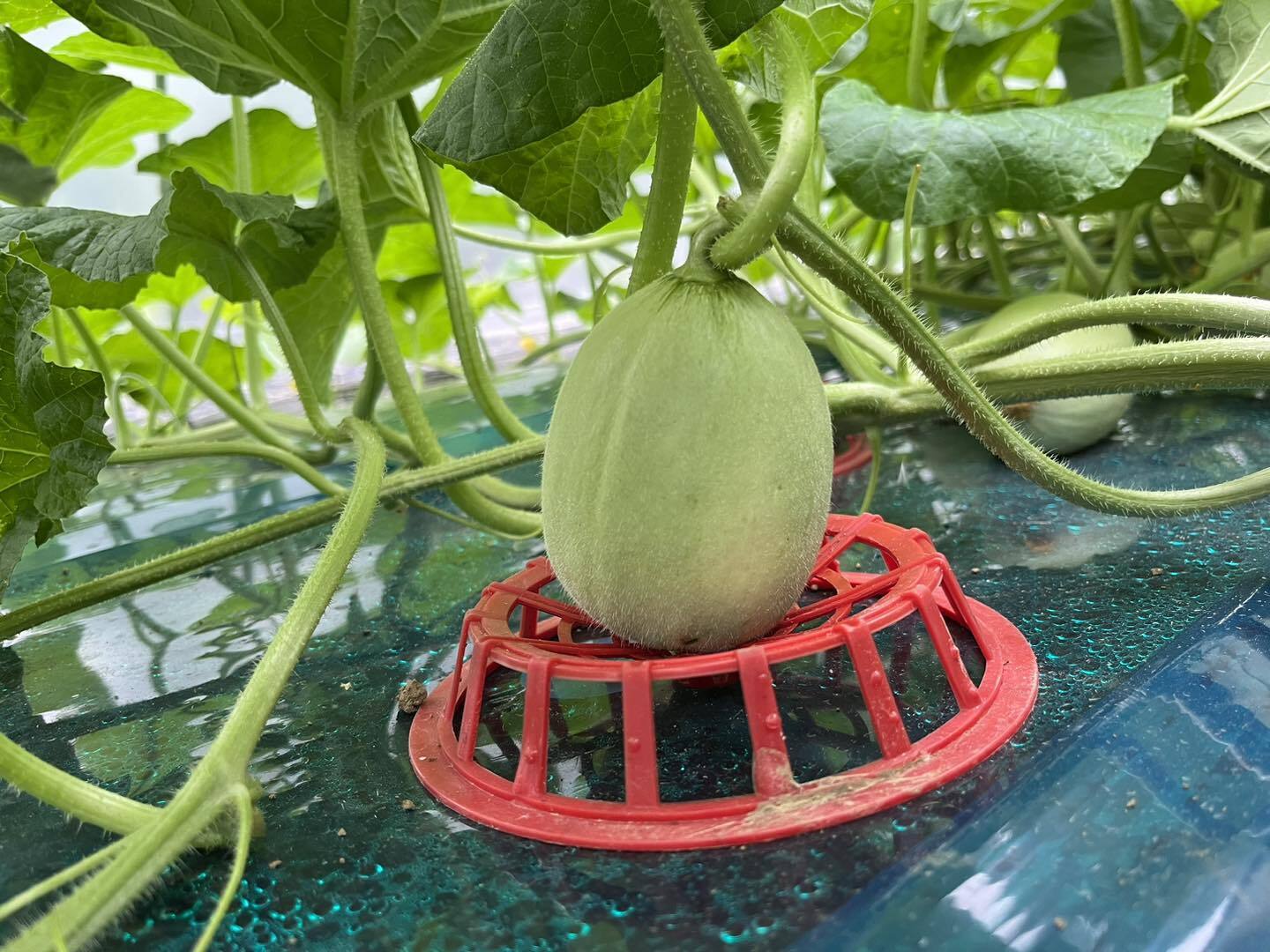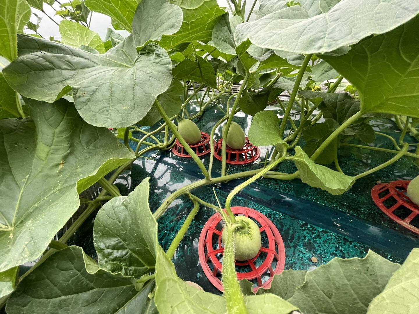 写真は、今シーズン最初に植えたメロンの玉です!とても良い玉に育っていて、ホッとしています。