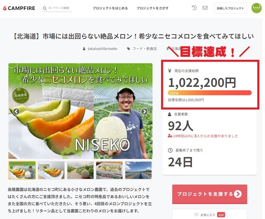 現時点で、支援者の方が92人、目標金額の102%となっています!