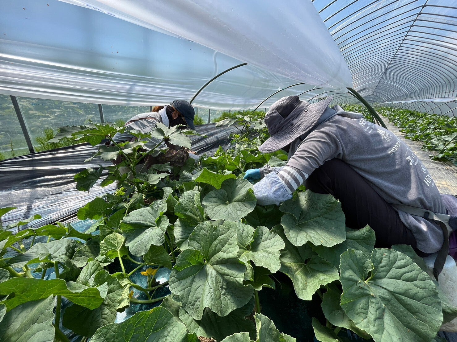 温度管理・水分管理・こまかな剪定作業など…シーズン中はほぼメロンにつきっきりです。また化学肥料を可能な限り使わず、有機肥料を使用する農法を採用しています。できる限り農薬を減らして栽培していますが、この農法は散布の調整が非常に難しく、また害虫への対応など手間がかかり、生産数を多くすることはできません。しかし、その分土壌が安定し、高品質なメロンをお届けすることができます。