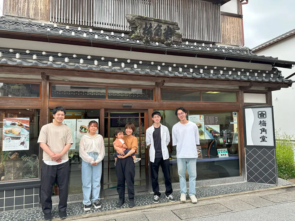 梅角堂は今年で創業114年目(明治42年創業)を迎える老舗和菓子屋さんで、「丹波黒大豆」を日本で初めて和菓子に加工したことでも知られています。このときに作られた甘納豆は、現在でも梅角堂で販売されている人気商品です。また、「和菓子屋さんが作る洋菓子」をコンセプトに黒大豆等を使った「ささやまタルト」を始め、丹波栗もなか、栗饅頭、黒豆や栗の特徴を生かしたようかんを製造販売しています。