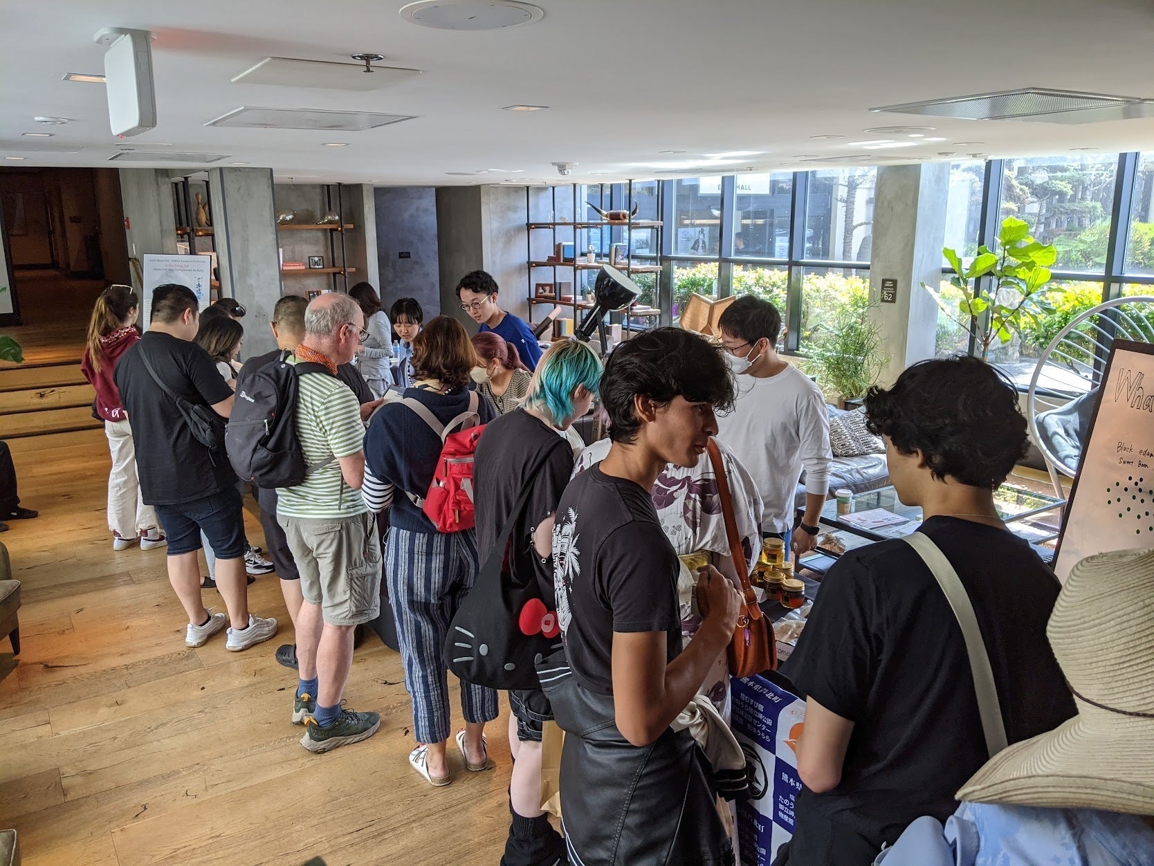 サンフランシスコで試食会を行いました!こんにちは!メンバーのれなです!みなさまのご支援のおかげで、無事にアメリカでの試食会を実現させることができました。応援してくださり、ありがとうございました!8月26日(土)、27日(日)にアメリカ、サンフランシスコのHotel Kabukiで行われた試食会の様子を、今回と次回の2回に分けて紹介していくので是非見ていってください~!試食会場の入り口(Hotel Kabuki 1階ロビー)今回の試食会では、黒枝豆ようかんをアメリカの方々に試食してもらい、135名にアンケート調査を行うことができました。事前の調査で、アメリカ人は黒い食べ物や甘い豆に抵抗があると聞いていたので心配でしたが、枝豆の量や甘さがちょうど良く、美味しいとの評価を多数いただくことができました!展示してある黒枝豆ようかん試食してもらう黒枝豆ようかんたくさんの方に直接感想をいただく機会が今まであまりなかったので、笑顔で美味しいと言ってもらえたのがとても嬉しかったです!2日間ともに盛況でした!次回も試食会の様子や調査結果などについて報告するので、楽しみにしていただけると幸いです!また、黒枝豆ようかんの公式Instagramアカウントを開設したので、そちらも覗いてもらえると幸いです!アカウントID:tambaguro.youcan※Instagramアカウントはこちら最新の活動報告について随時更新していきますのでご期待ください!