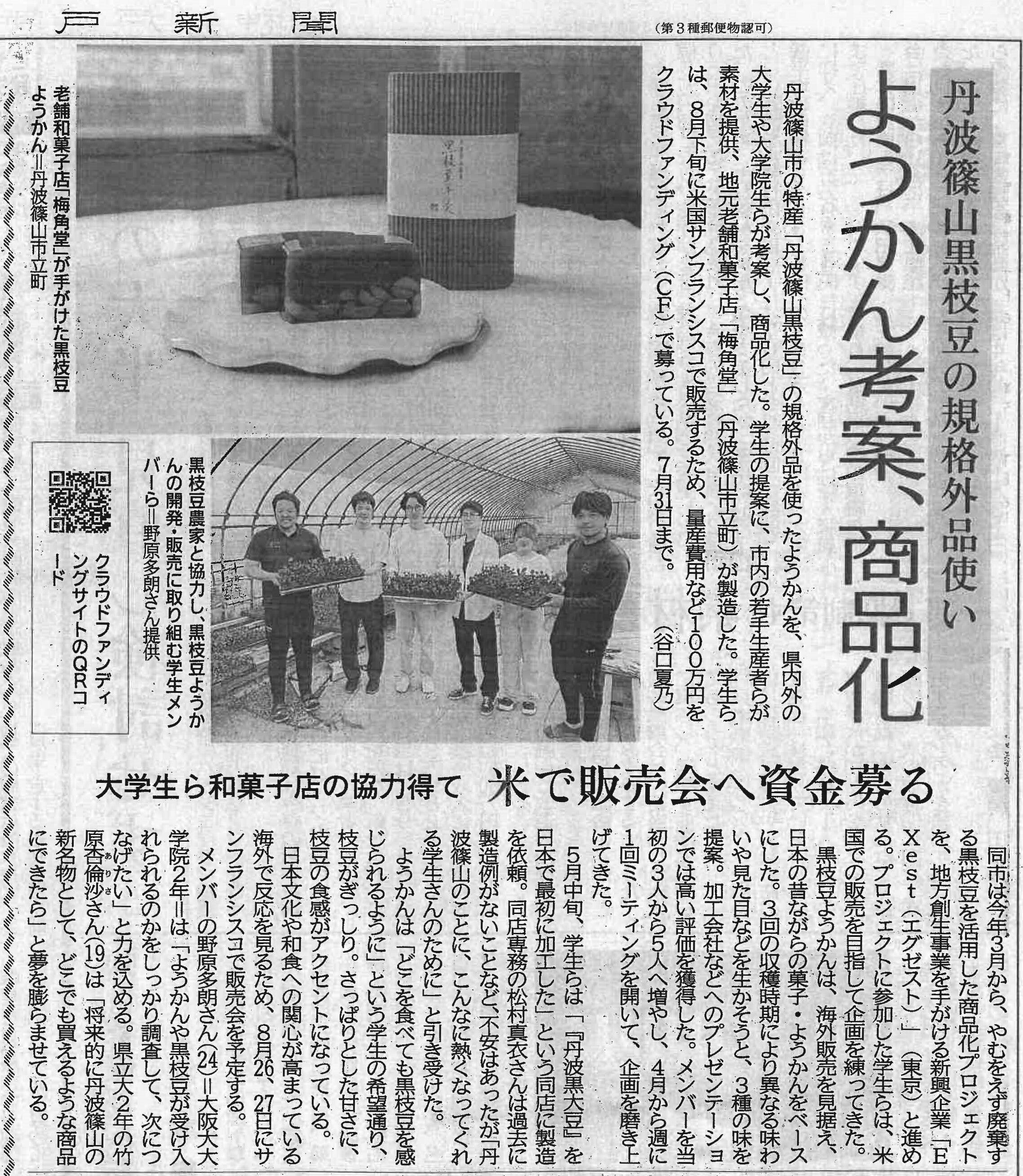 神戸新聞に私たちの黒枝豆ようかん開発プロジェクトが掲載されました!