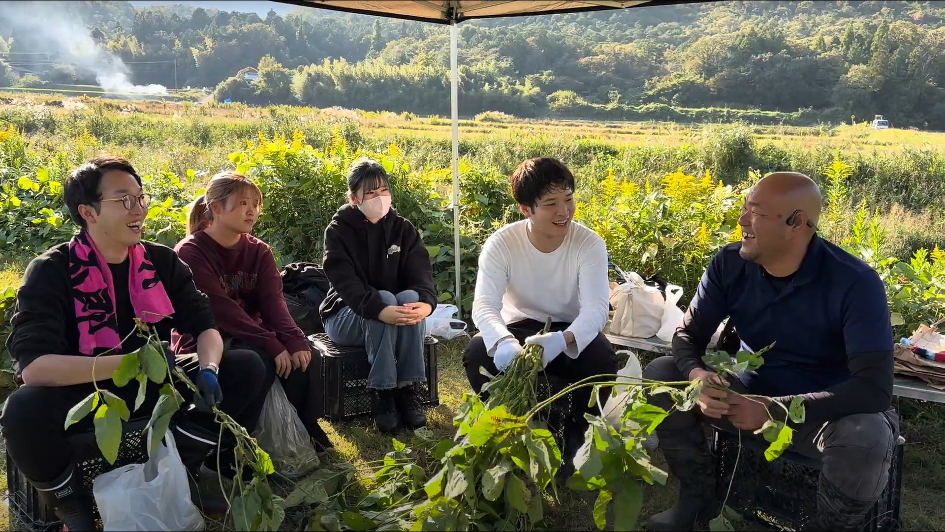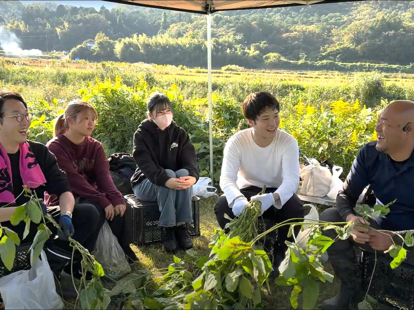 収穫体験後はかまい農場の代表、構井友洋さんに黒枝豆の規格外品の基準や、今年の収穫状況などをお聞きしました。今年は天候などの問題で例年より規格外品の割合が多いとのことで、我々のプロジェクトの重要性を改めて感じる機会となりました。また、規格外の黒枝豆を使った新しい商品開発に関してもお話しました。今後の活動にも期待していただけると幸いです!