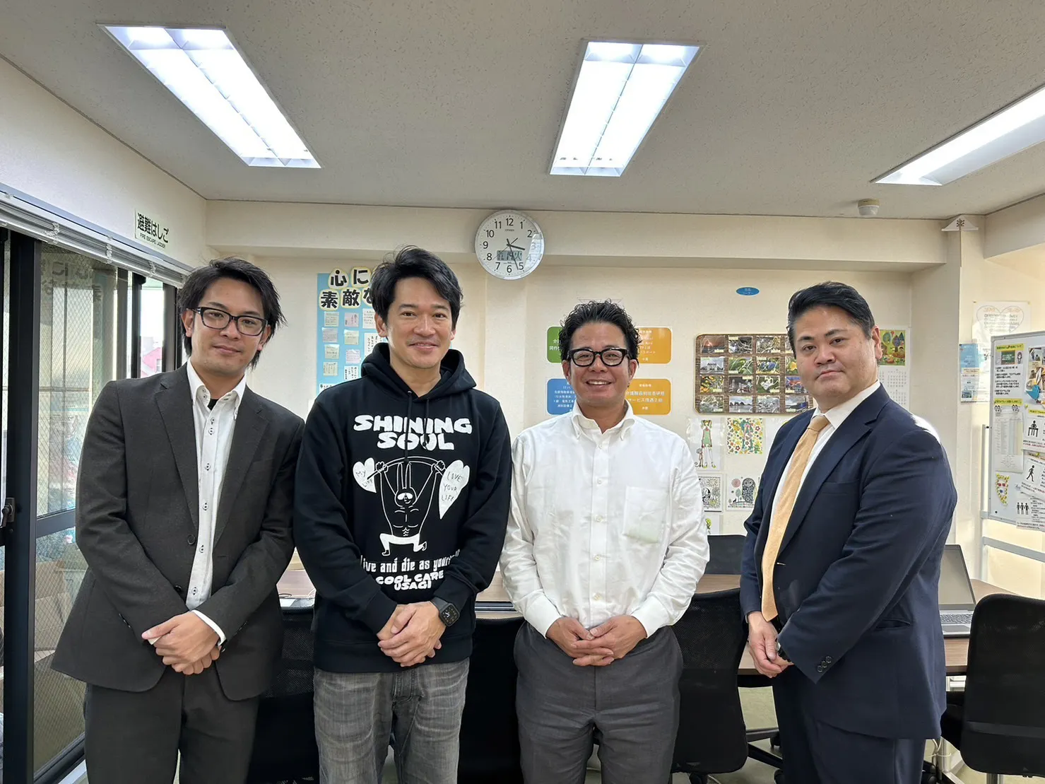 2023/12/24 16:11みなさんこんにちは!本日は、主演の内浦純一がにじ中野坂上に見学へ行った様子をお届けします♪『にじ中野坂上』は就労移行支援事業所で、今回の映画に全面協力してくださる事業所です。ドキュメンタリーパートの撮影はすでに始まっておりますが、ドラマパートの撮影はまだ先・・・役への理解を深めるため、内浦と蜂丸で事業所にお邪魔させていただき、利用者さんや支援員の皆様とお話をさせていただきました!資料を真剣に読む内浦純一。とある事情で失職し、現在にじで資格取得の勉強をしている利用者に話を聞く。彼の人生に耳を傾ける内浦の表情は真剣そのものです。蜂丸はこの事業所で働く支援員という役のため、少し前からアルバイトとしてにじでお世話になっています。支援員と利用者さんとみんなでお話。優しい方ばかりで、終始和やかムードでした。最後はみんなで記念撮影!この様子は、リターン特典のDVDにも収録予定です♪お楽しみに! もっと見る