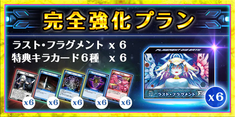 本製品「ラスト・フラグメント」6個と以下キラカードが6枚ずつ付属されます。