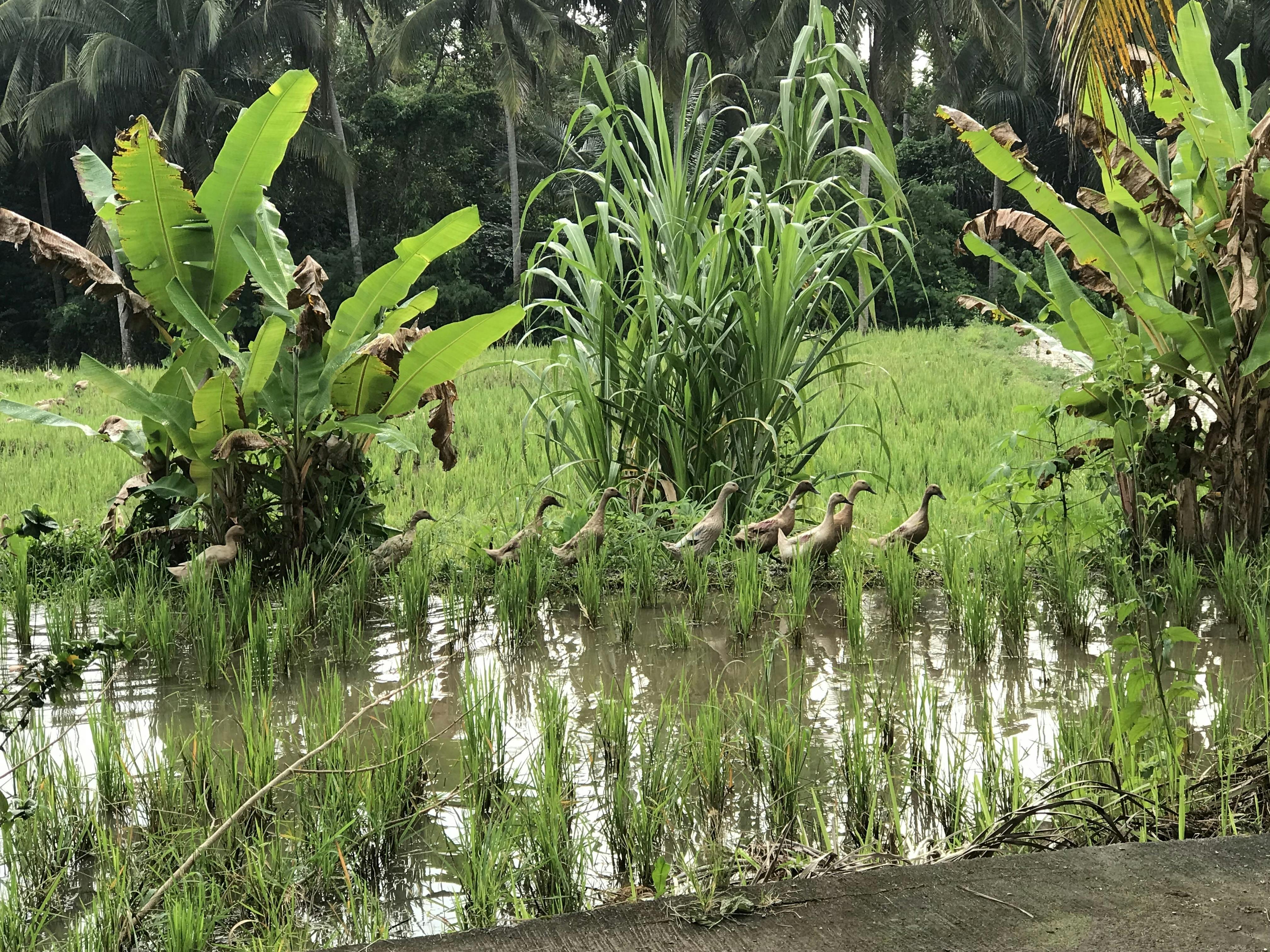 アヒルが行列を作る棚田や