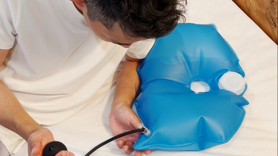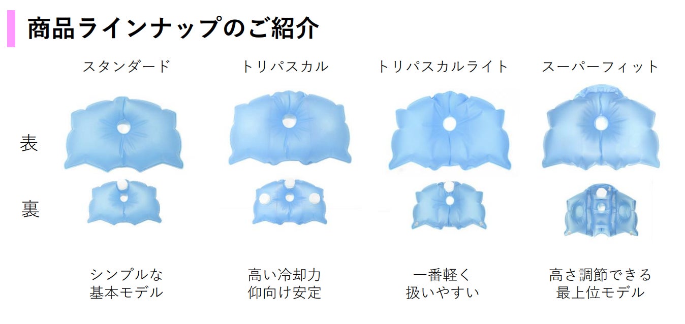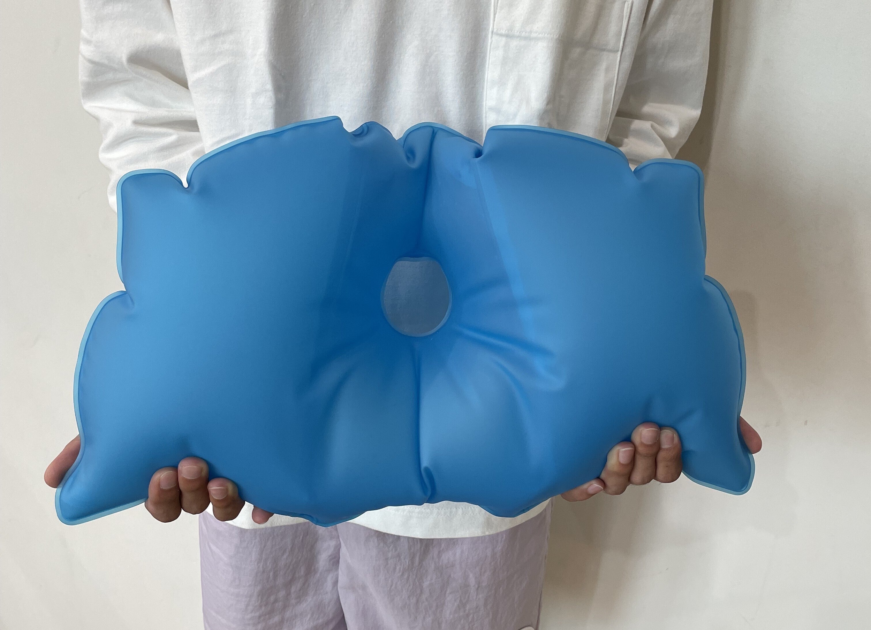 今回のプロジェクトでご紹介させて頂いた「S-sleepトリパスカルライトtype」の特徴は、3分の2が空気となるためS-sleepの中では軽量化した水枕となります。