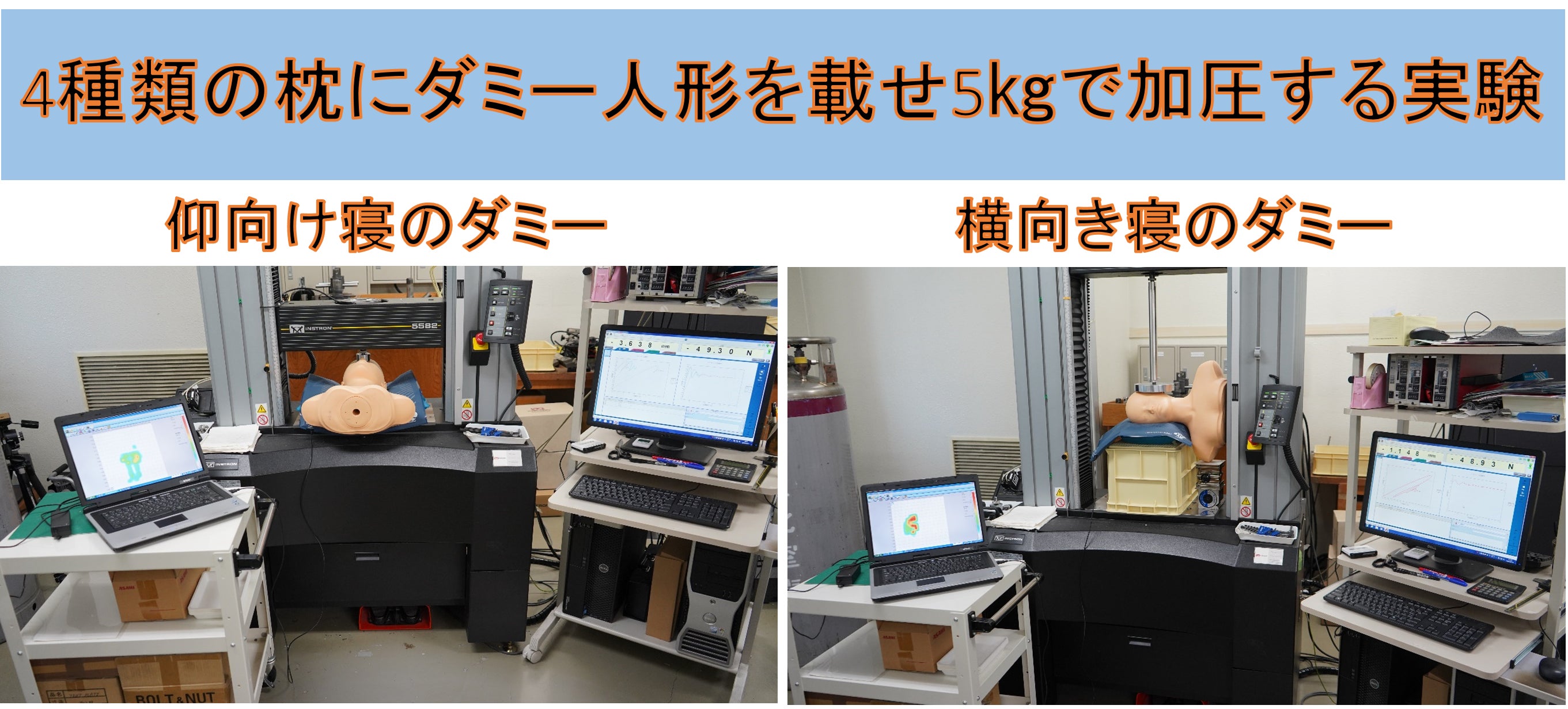 精密機器によって均一の圧力を加え素材の異なる枕との比較実験も実施!