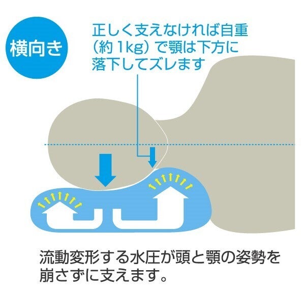 ●頭の重みが加わると流体が移動して首を下から持ち上げるように支持します。