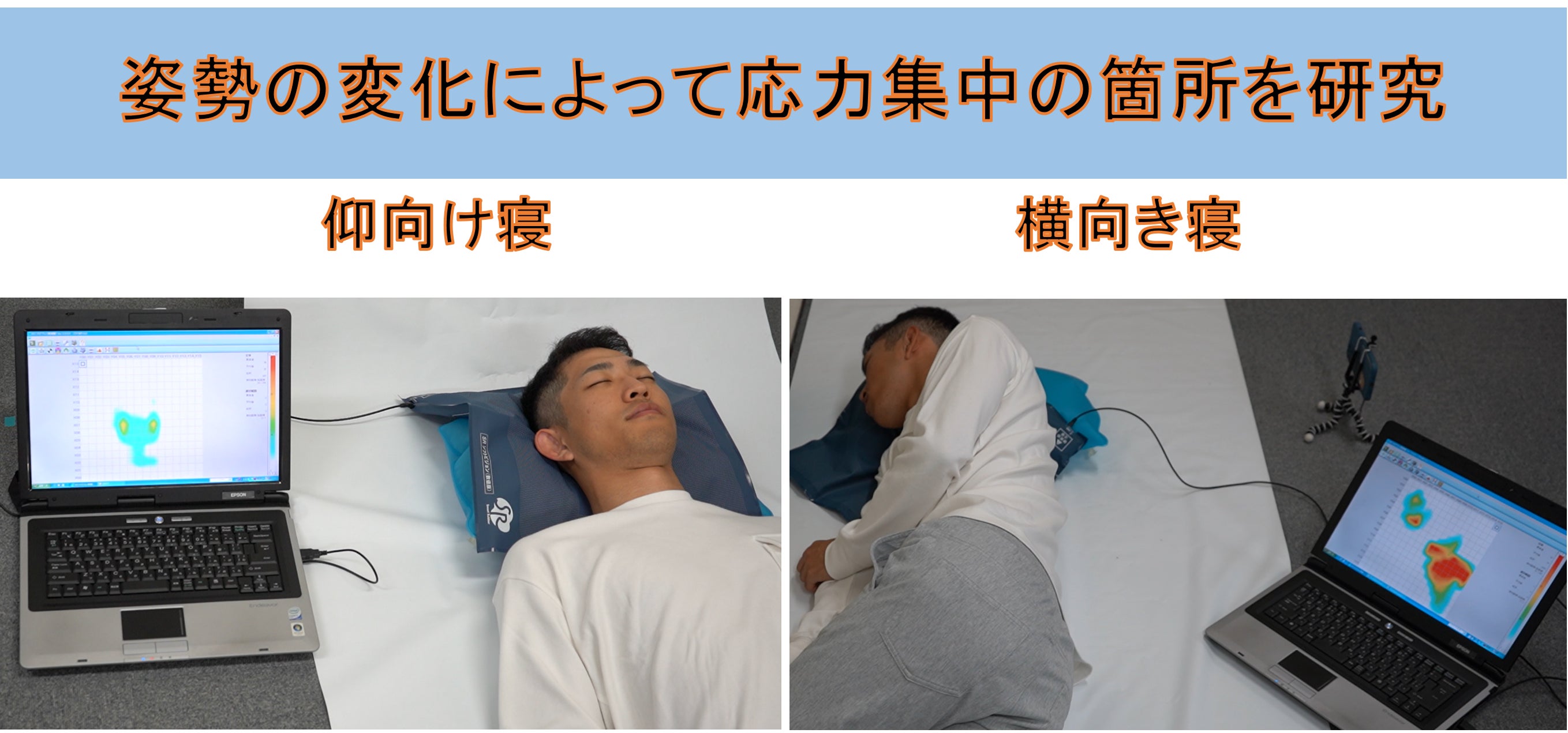 その結果『仰向け寝』と『横向き寝』の2つの姿勢により、身体の応力が集中する部位が以下2つの一貫性があることを確認しました。