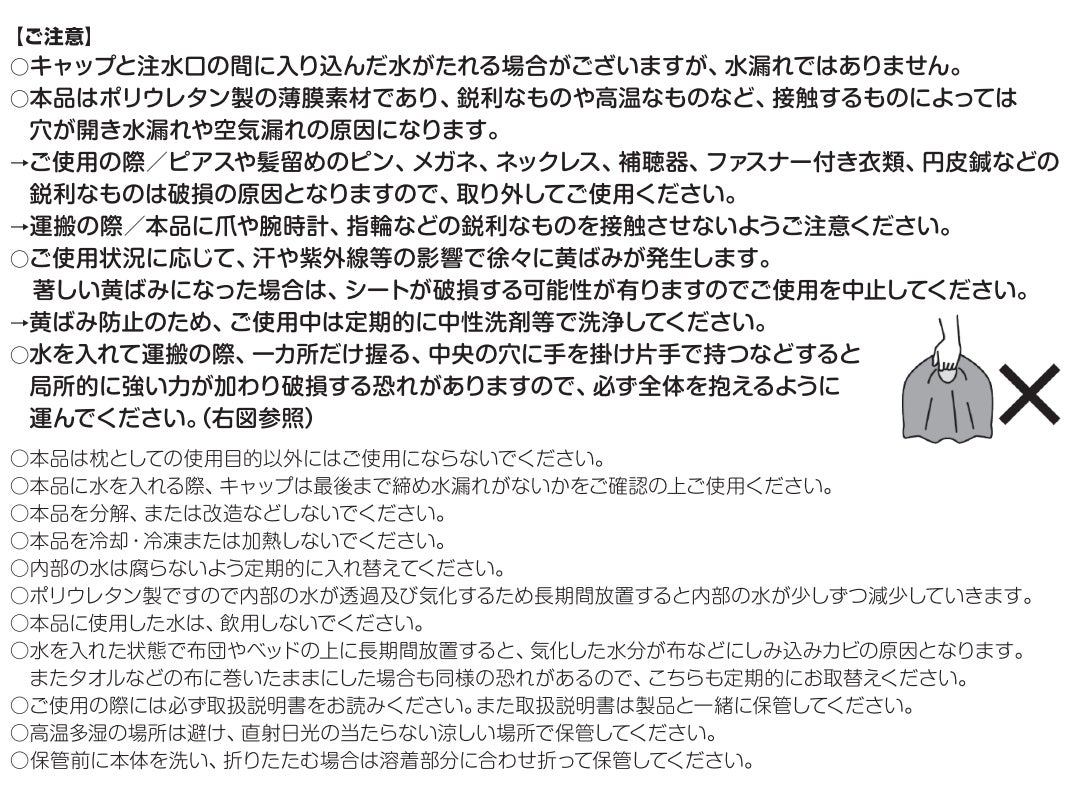 5.氷を入れる等により冷たく感じる場合にはタオル等で包んでご使用ください。