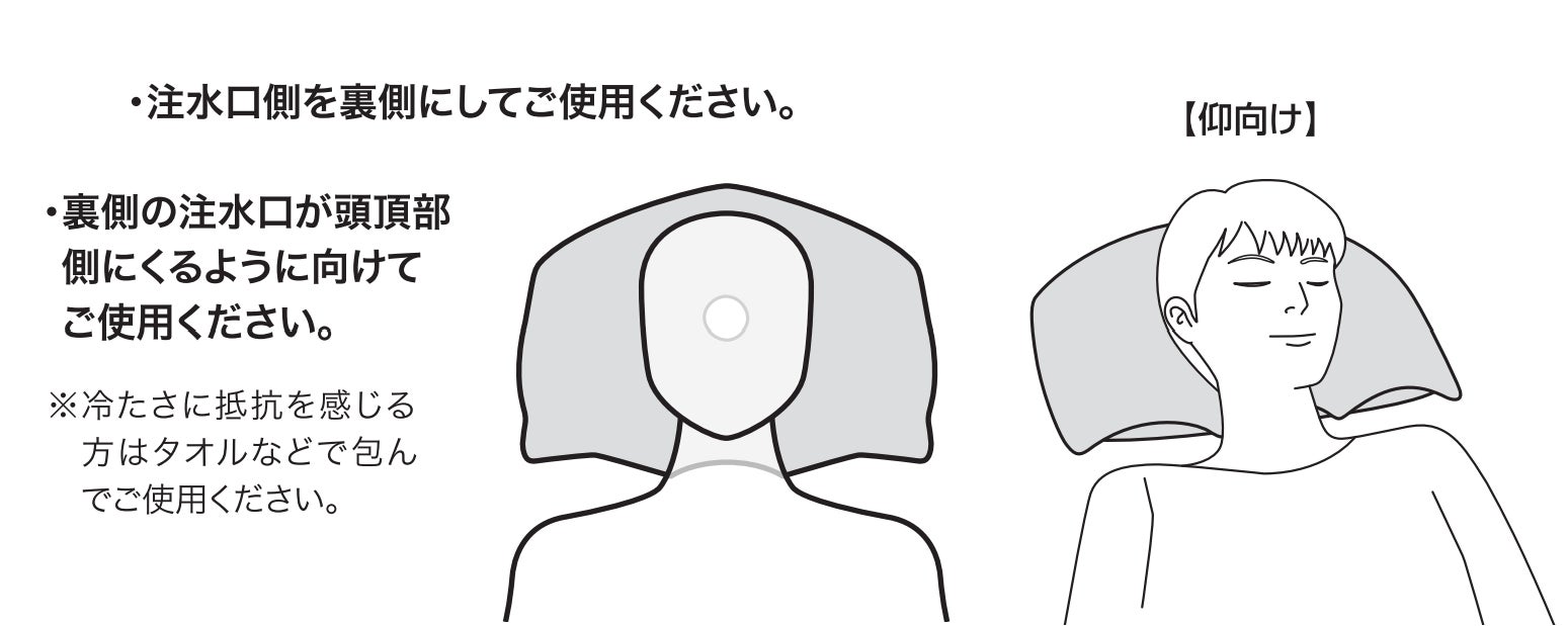 ※3か所から水または氷水を入れるタイプで、仰向け寝と横向き寝の各々の高さ調節が可能です。