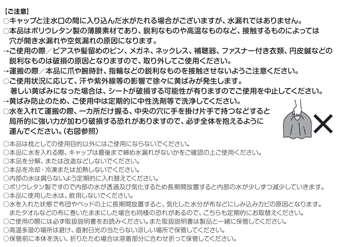 5.氷を入れる等により冷たく感じる場合にはタオル等で包んでご使用ください。