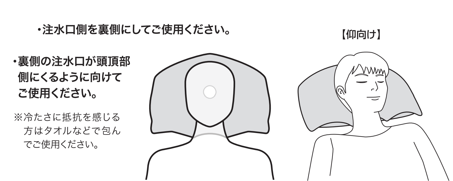 ※3か所から水または氷水を入れるタイプで、仰向け寝と横向き寝の各々の高さ調節が可能です。