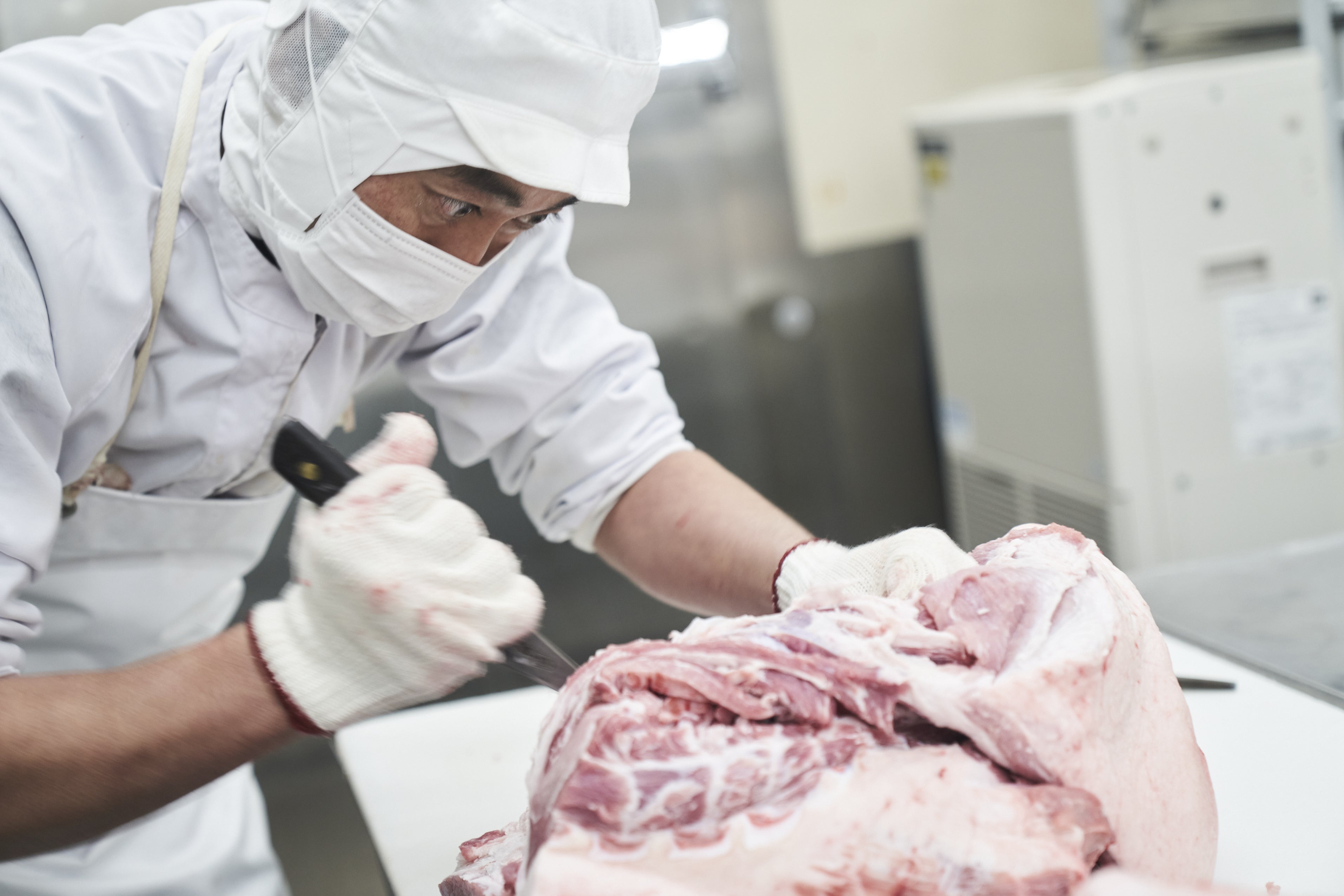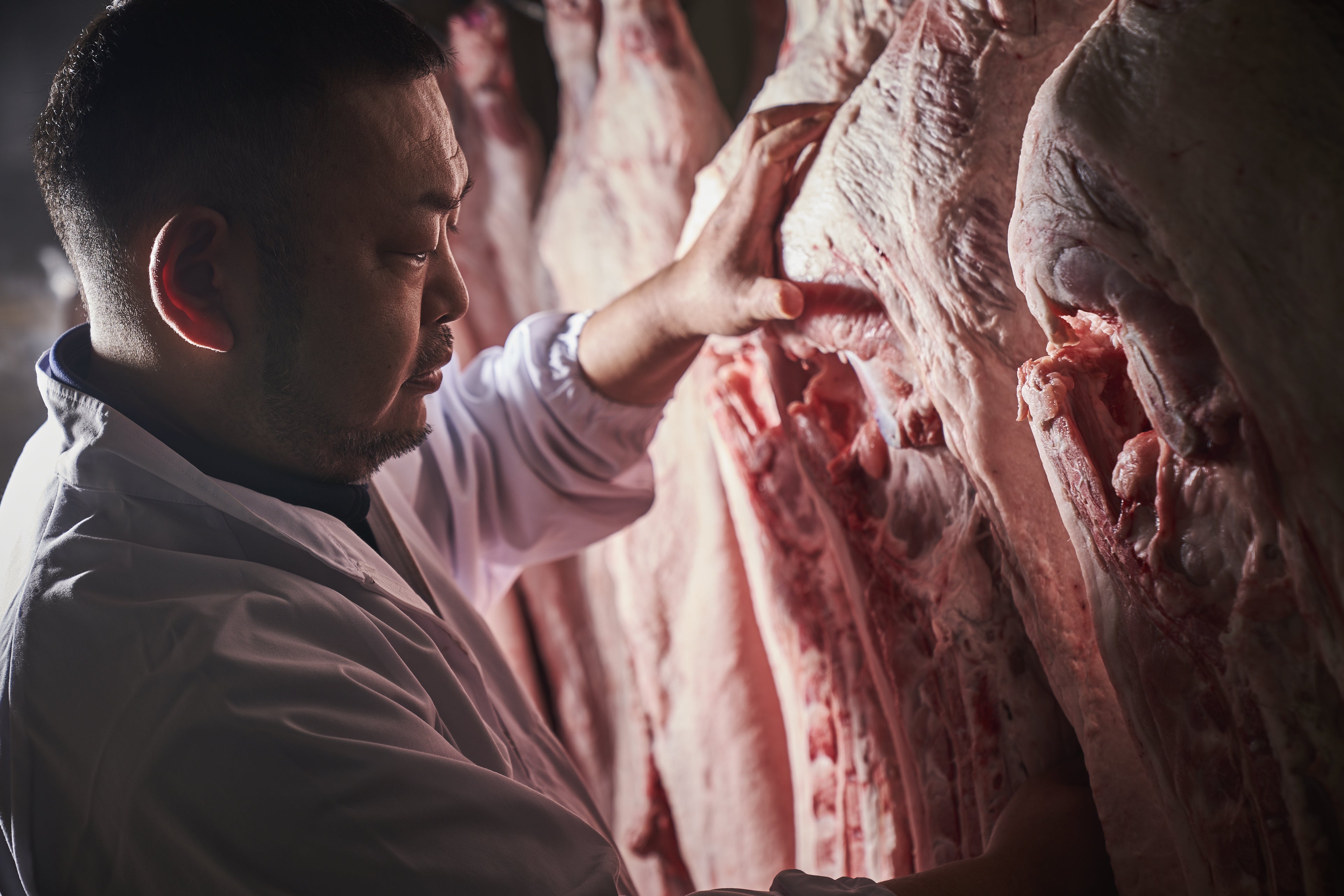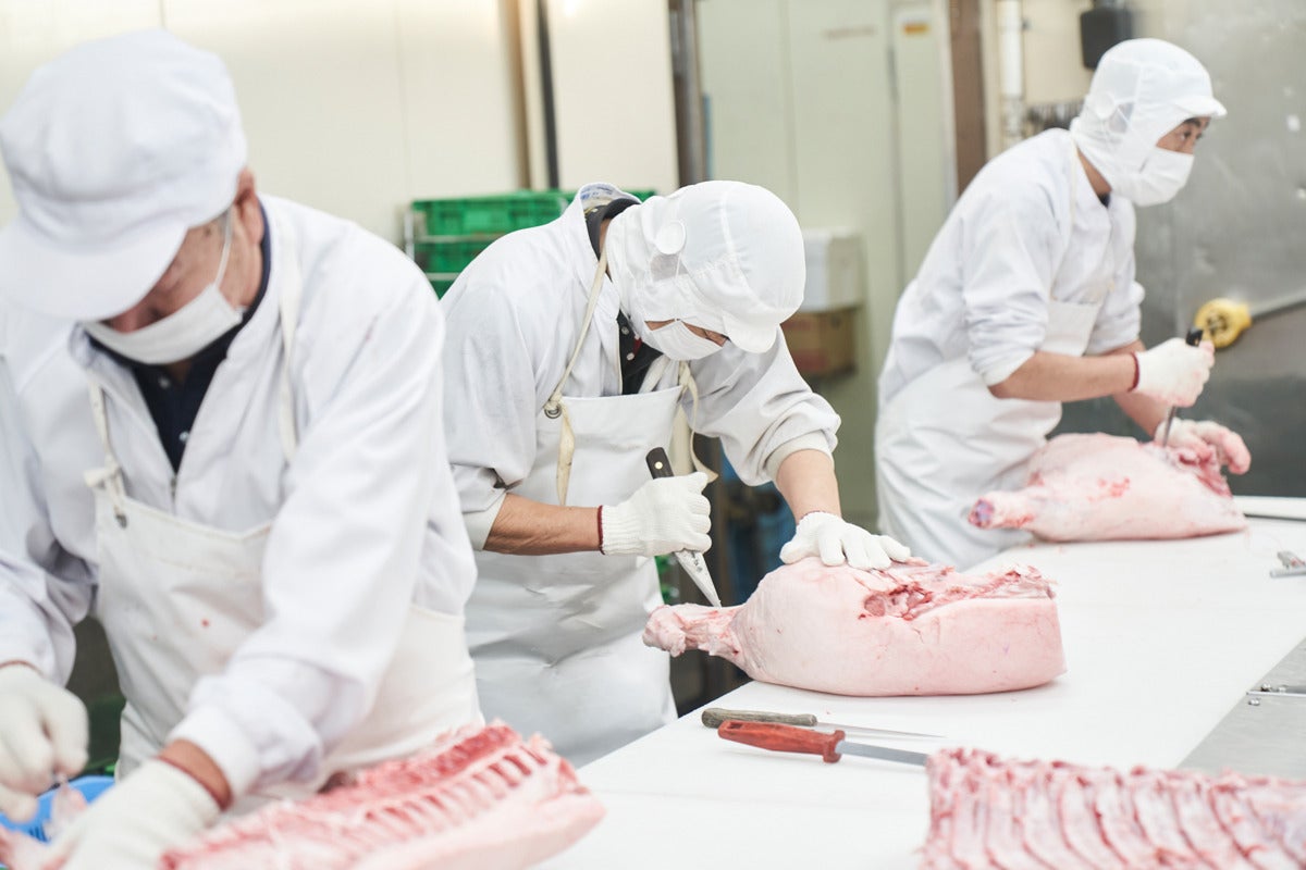 今回のプロジェクトで私たちが実現したいこと、それは店舗併設の自社加工場内に氷温庫を設置することで私たちが関わることのできる食肉流通におけるもっとも川上にある枝肉から脱骨、加工、そして氷温庫での氷温熟成まで一貫して内製化、最も川下である消費者にさらに昇華した氷温熟成® 眠り豚はるなを召し上がっていただくことです。