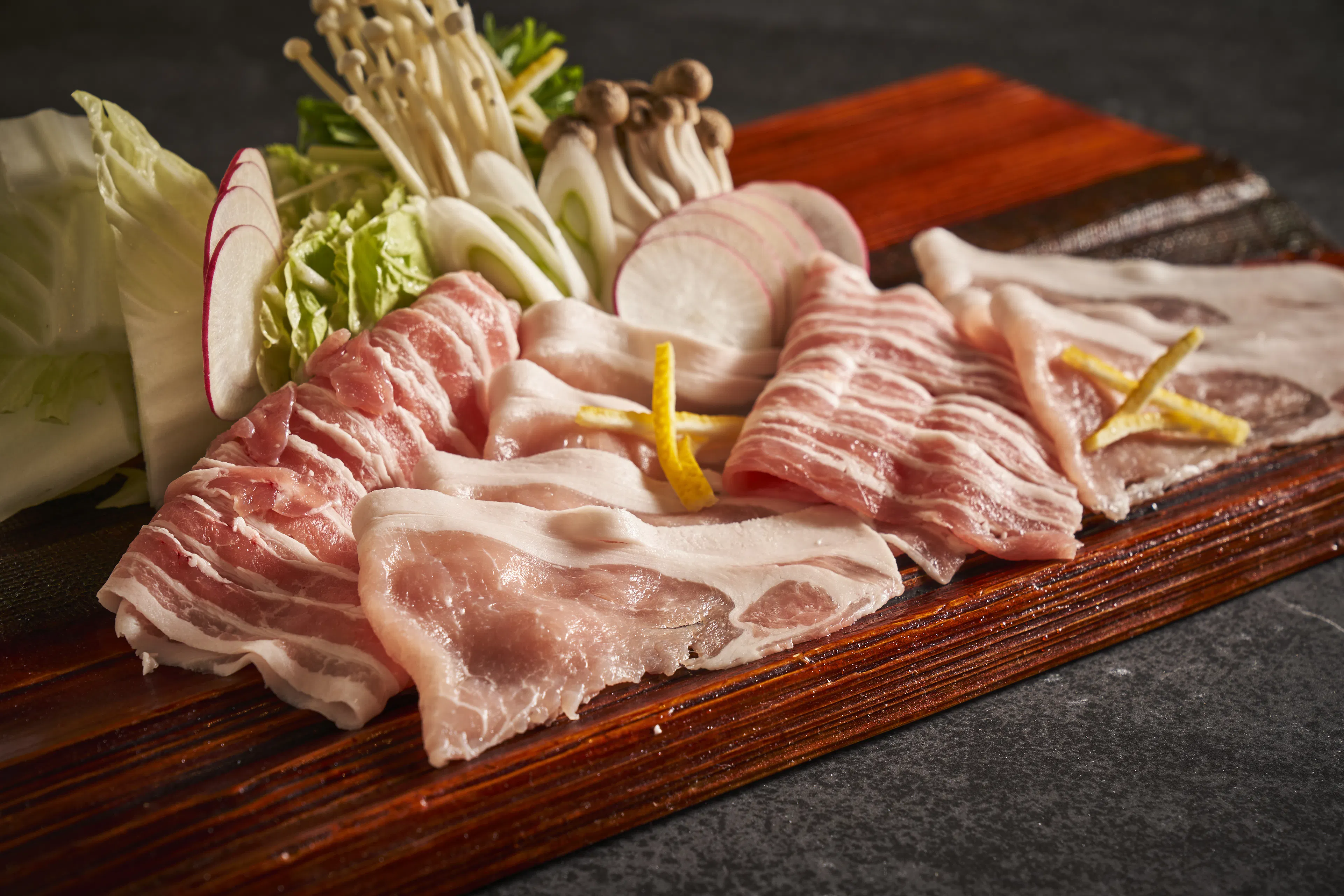 市場流通ではなく生産者との距離感を大切にする中で消費者が食するテーブルシーンにしっかりとしたストーリーを作ることで喜びや感動、笑顔を創出したい、そんな思いが当店オリジナルポーク”氷温熟成® 眠り豚はるな”誕生の根源にあります。
