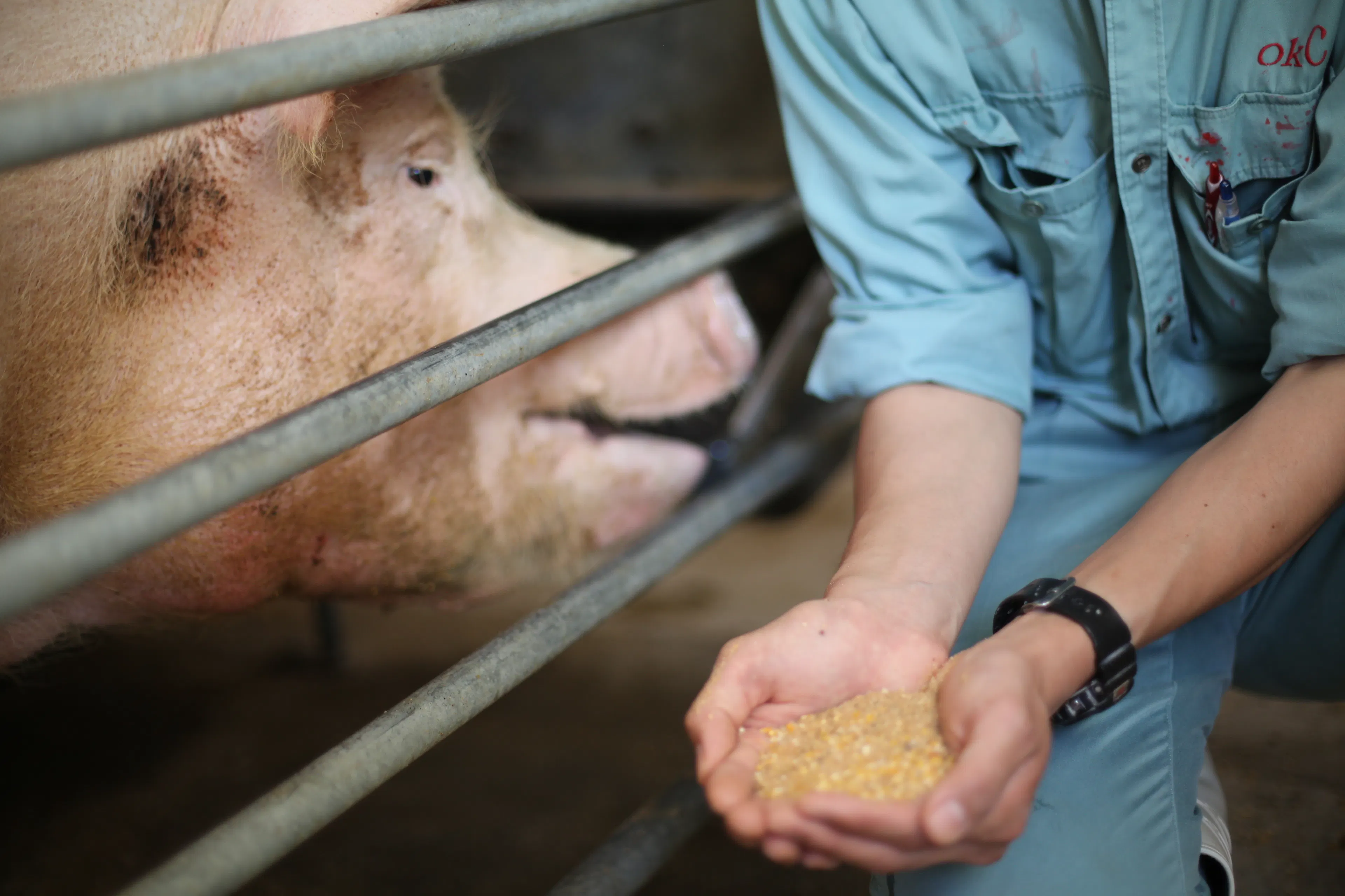 養豚を専業として50年以上の歴史をもつOKC農場。 榛名ポークの品質は、長年の経験と知識に裏打ちされた確かな技術力によって守られています。榛名ポークの味を決める飼料配合へのこだわりはもちろん、 発育速度の違う雄雌を別管理し、 発育状況に合わせた餌を与えることで品質を安定させています。肥育・繁殖・分娩を分業化することでスタッフの専門性を高める取組み、全国の養豚業者とのネットワークによる最新情報の収集など、様々な取組みを行なっています。