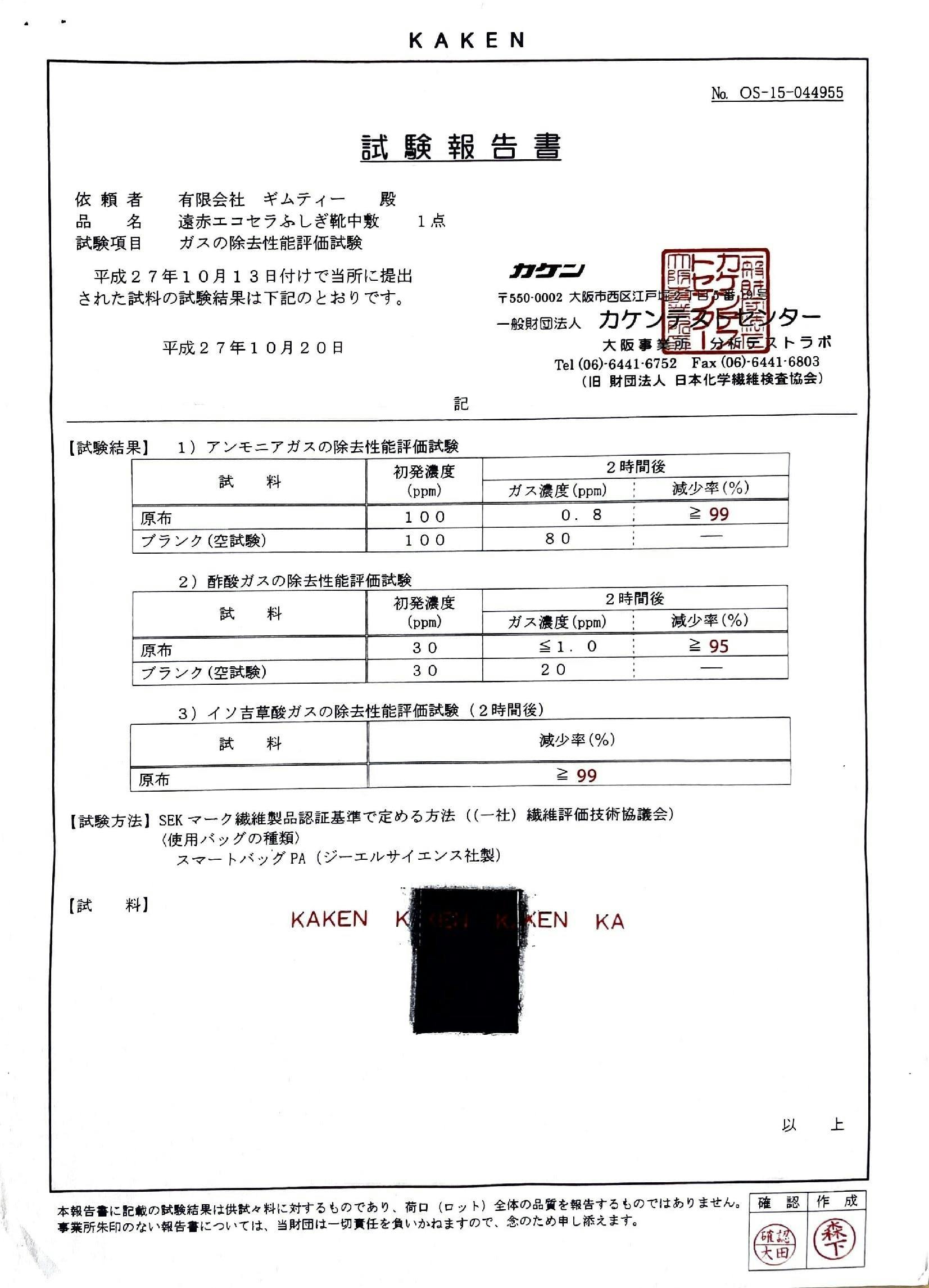 上記特許による殺菌と消臭機能を備えた断熱シートを使用した足袋です(二酸化チタンの光触媒による効果)