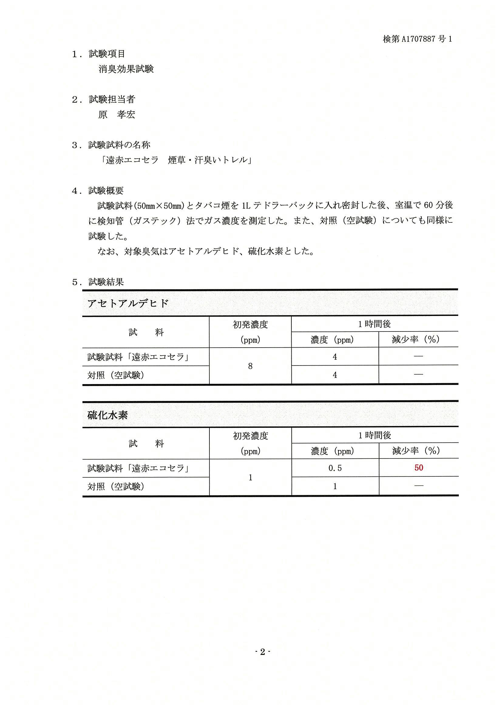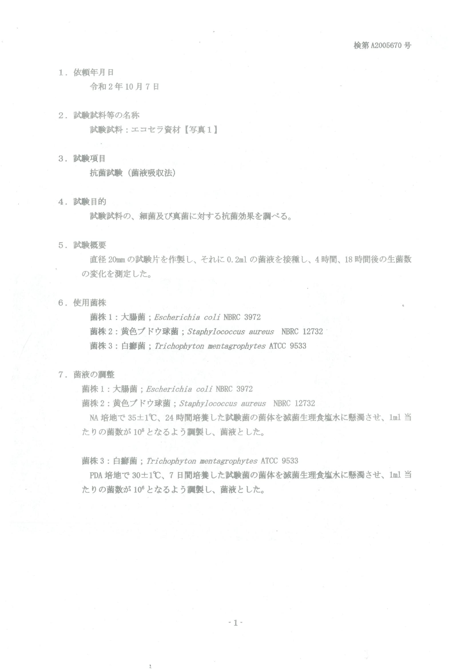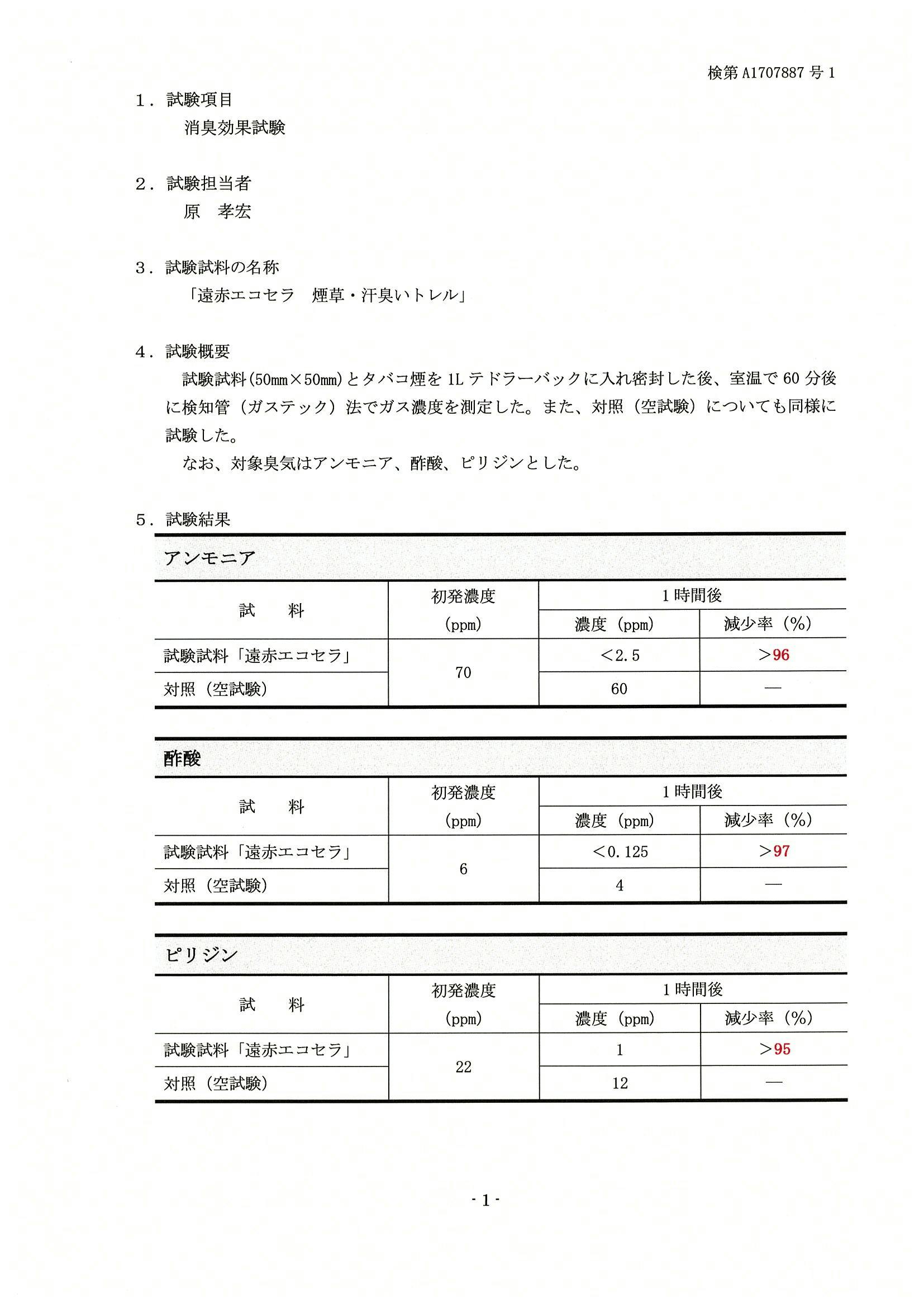 私は本年8月には、遠赤エコセラを活用した「エコセラ基盤」による光触媒の試験結果を得て多様な可能性に自信を持つことができ、この素晴らしい可能性を商品化することが出来れば人々の暮らしに貢献できるのではないかと考えたことにほかなりません。