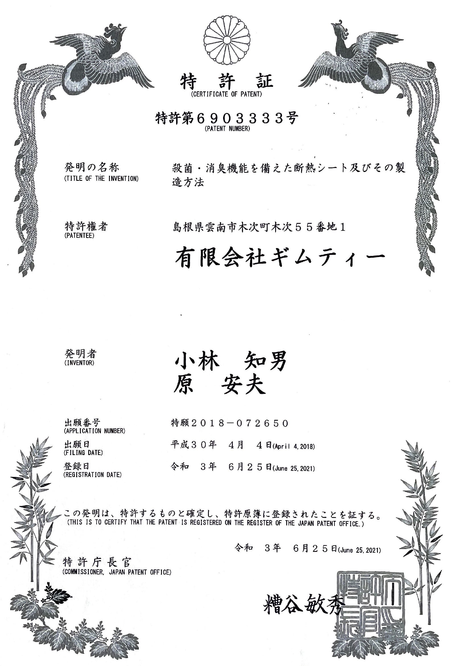 上記特許による殺菌と消臭機能を備えた断熱シートを使用した足袋です(二酸化チタンの光触媒による効果)