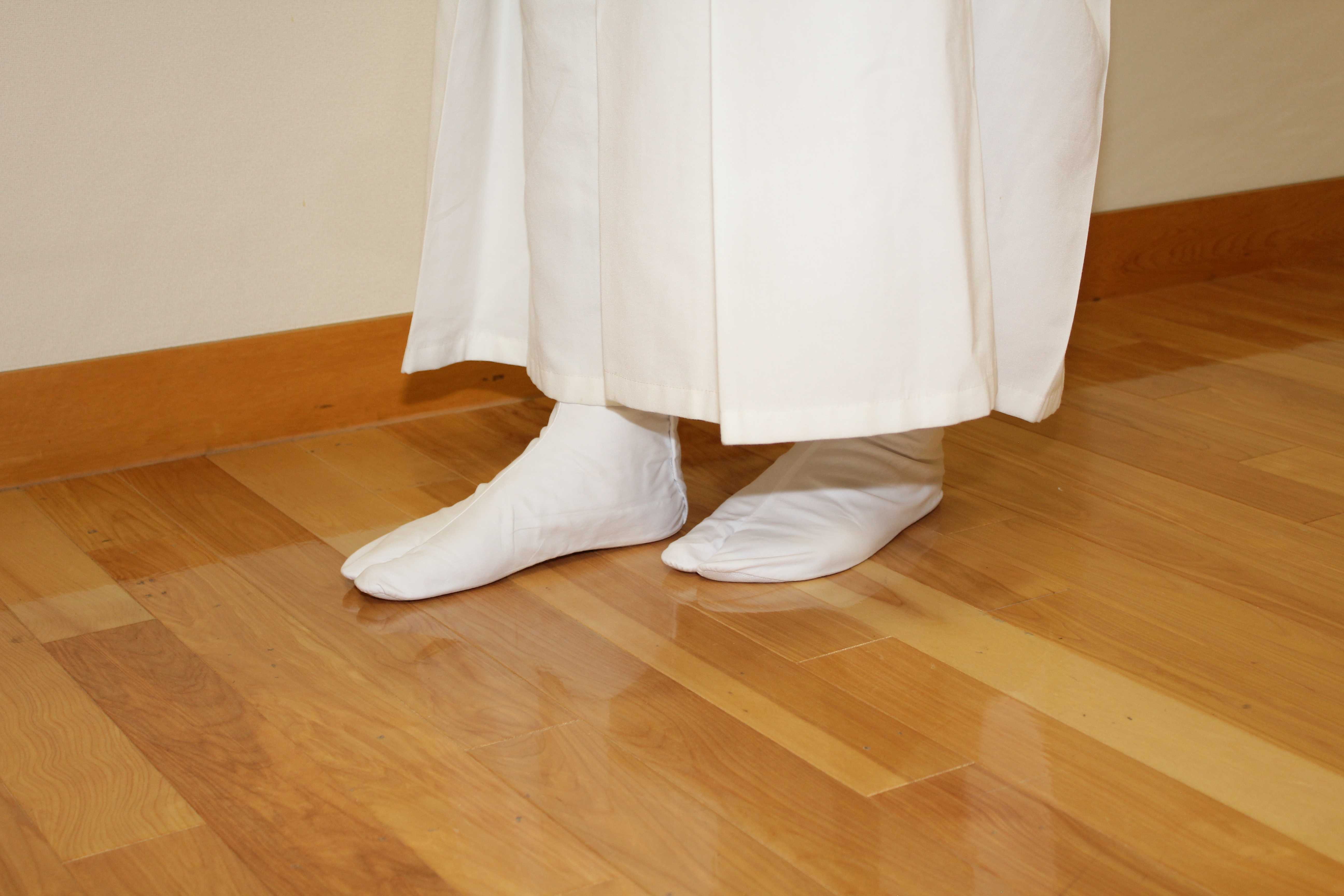 今では神職・僧侶等の方々が服を着用される際に履き物として草履・下駄等足の親指と他の指が分かれたものを履きます。