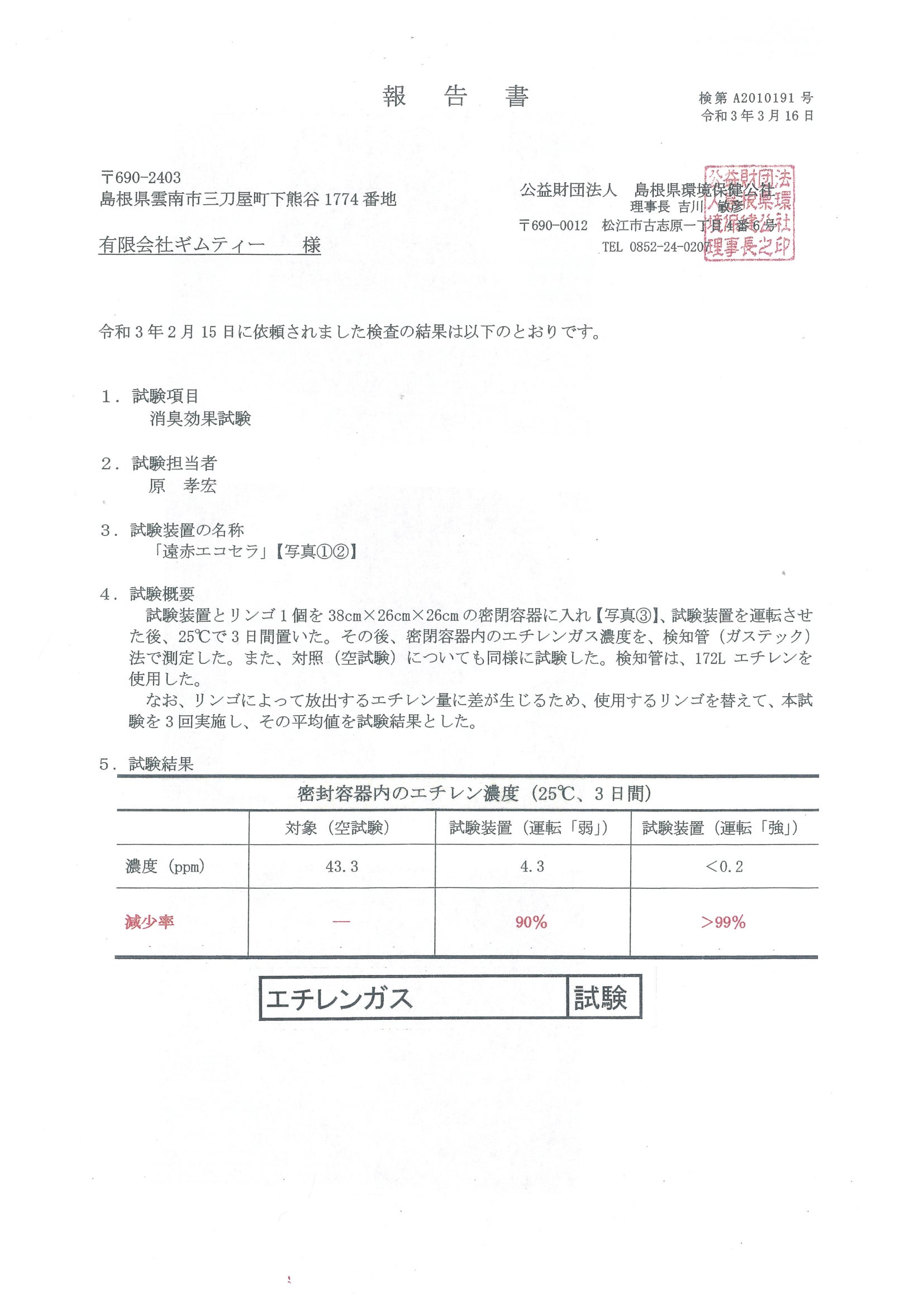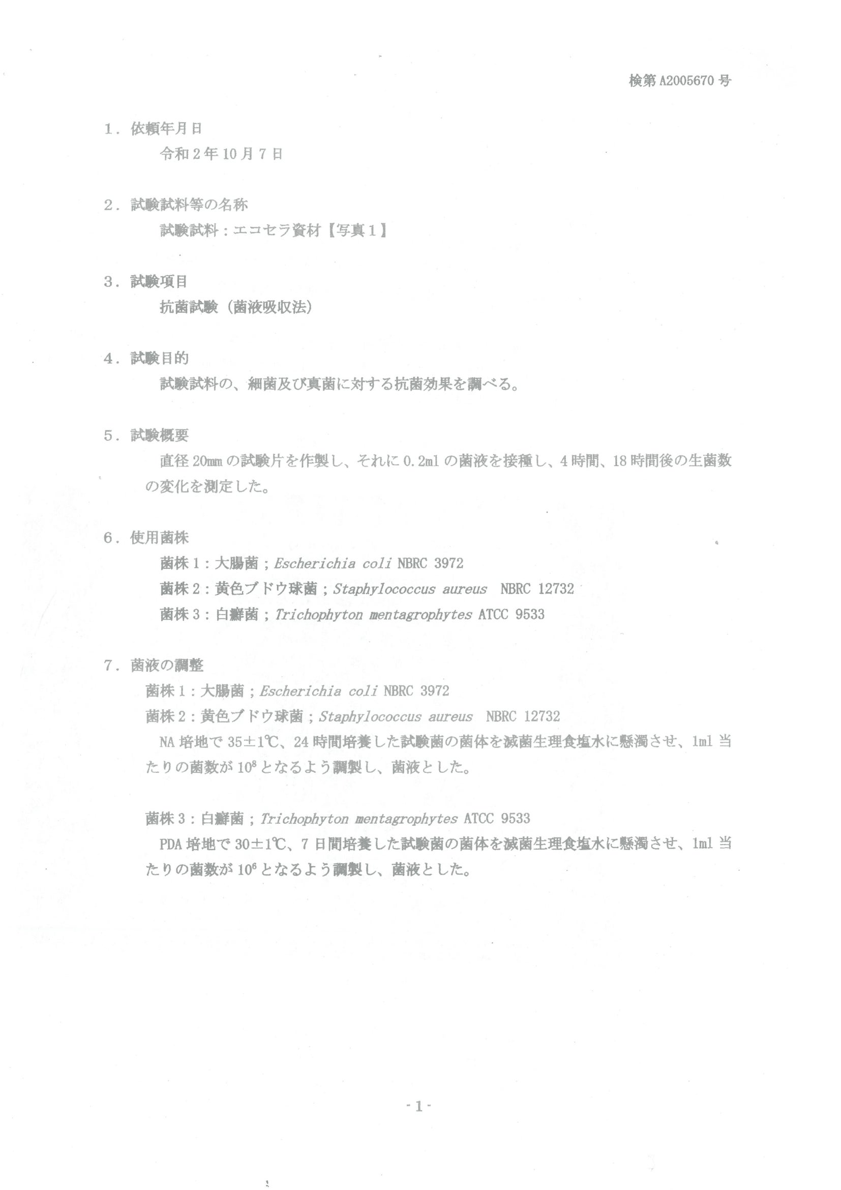私は本年8月には、遠赤エコセラを活用した「エコセラ基盤」による光触媒の試験結果を得て多様な可能性に自信を持つことができ、この素晴らしい可能性を商品化することが出来れば人々の暮らしに貢献できるのではないかと考えたことにほかなりません。