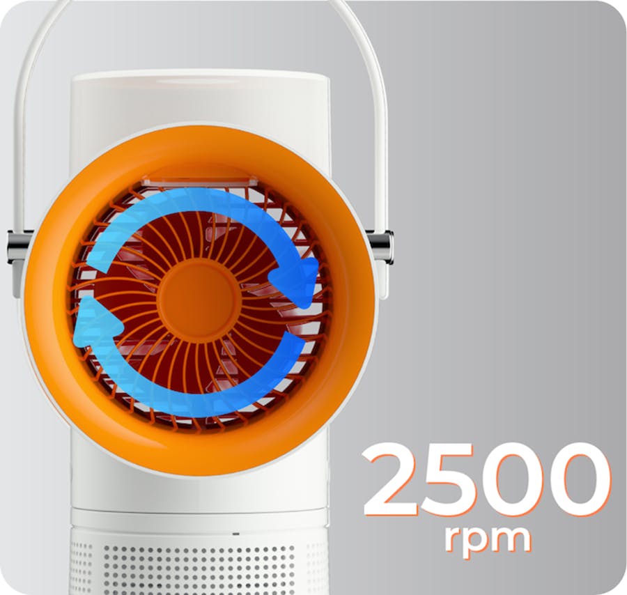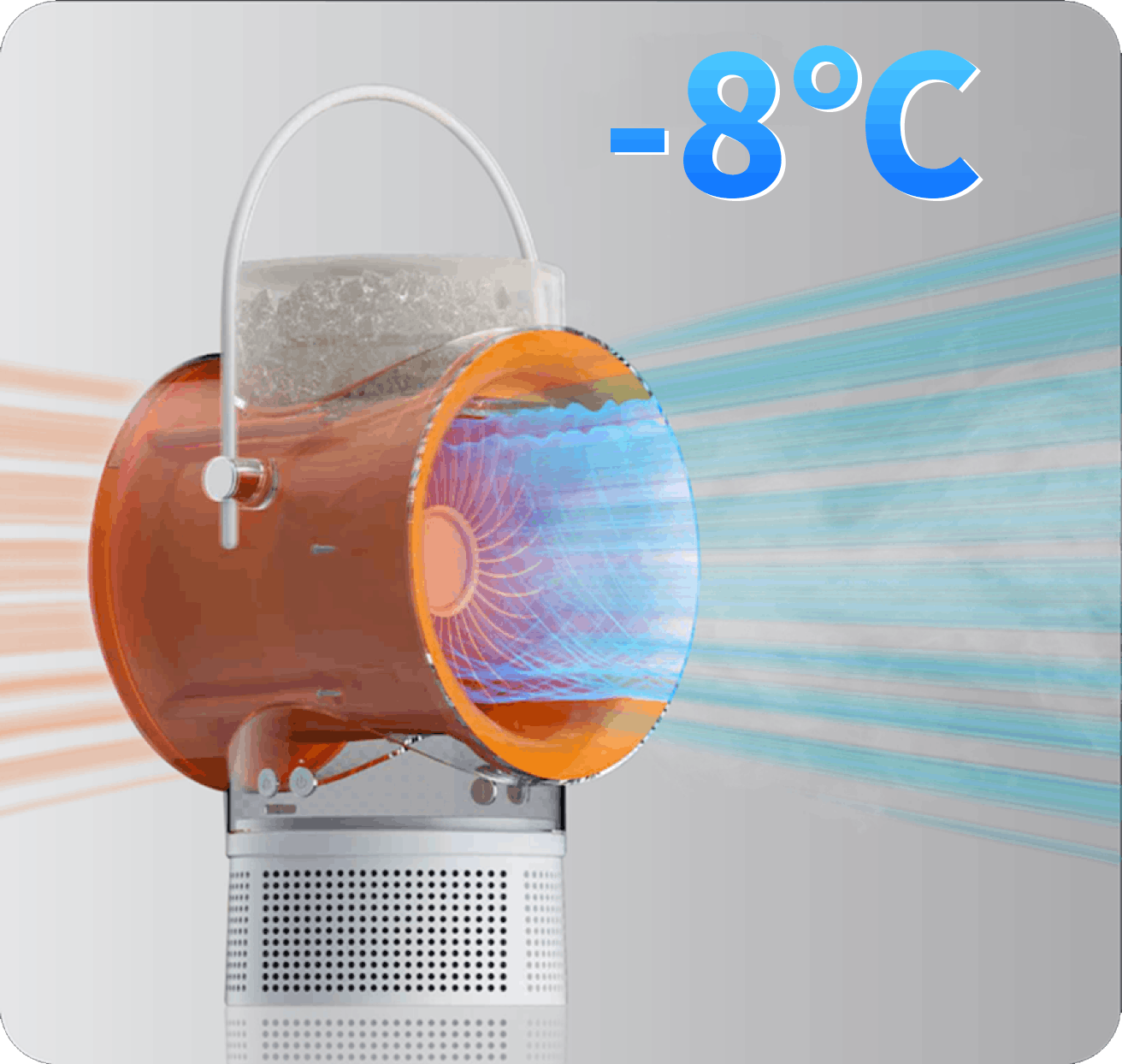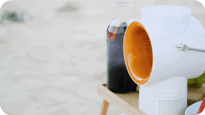 タービンと霧の力を組み合わせることで、ChillZ Proは数分で8度以上の温度を下げることができます。ChillZ Proは、直接その前にある物体を非常に速く冷やします。我々は、温度計が接続された金属板と対戦させ、わずか10分で8℃の温度低下を記録することができました。これは、直径を倍増させた従来の扇風機よりも大幅に速く、非常に効果的です。水タンクに氷を入れて急速に冷やすこともできます。