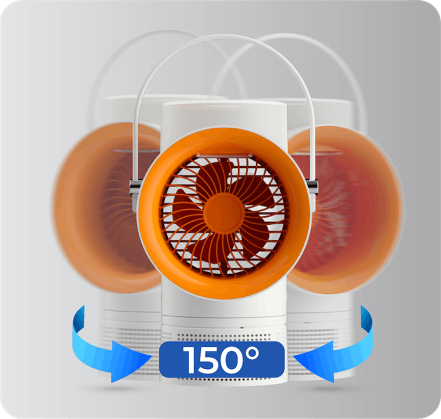 多くの扇風機は90度しか回転しないため、風は小さな領域に限定されます。しかし、ChillZ Proには、底部に取り付けられた超広角ギアセットがあり、左右に150度の角度で動かすことができます。このオプションを使用すると、ChillZ Proを遠くに配置して高速に設定することができ、部屋全体を冷やすことができます。