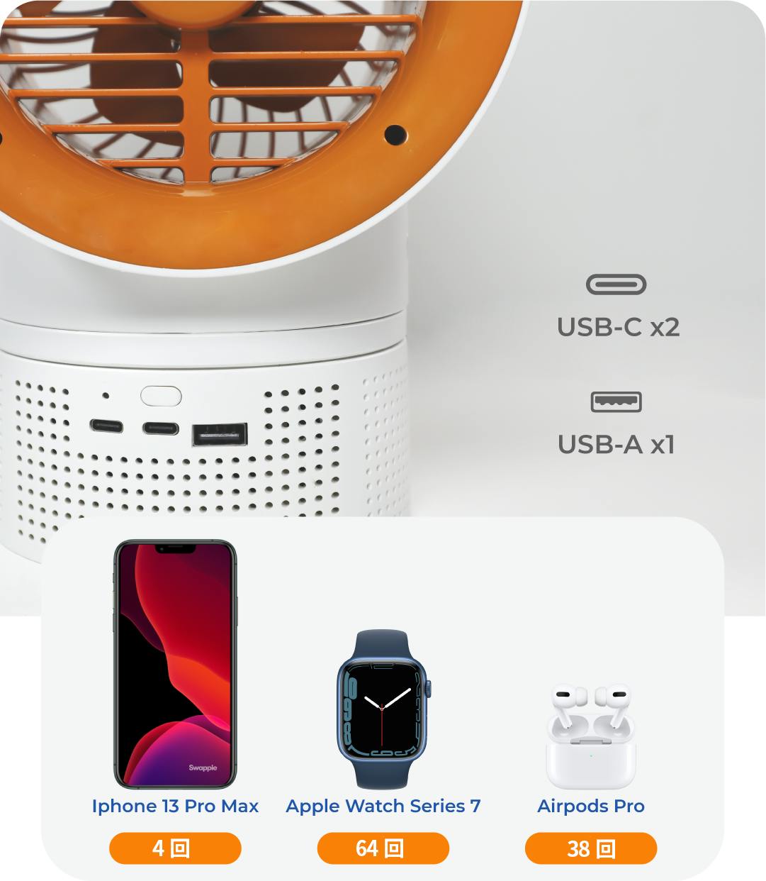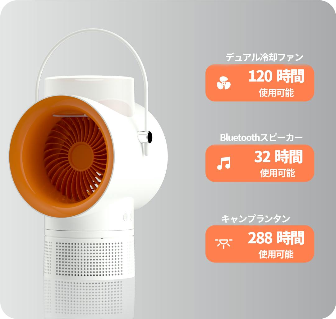 20000mAhを最大限に活用するために、ChillZ Proには3つのUSB高速充電ポートが搭載されており、複数の電話、懐中電灯、その他のガジェットを同時に充電できます。ファンを最大120時間、お気に入りの音楽を最大32時間再生することができます。もう利用可能なポートで争う必要はありません!