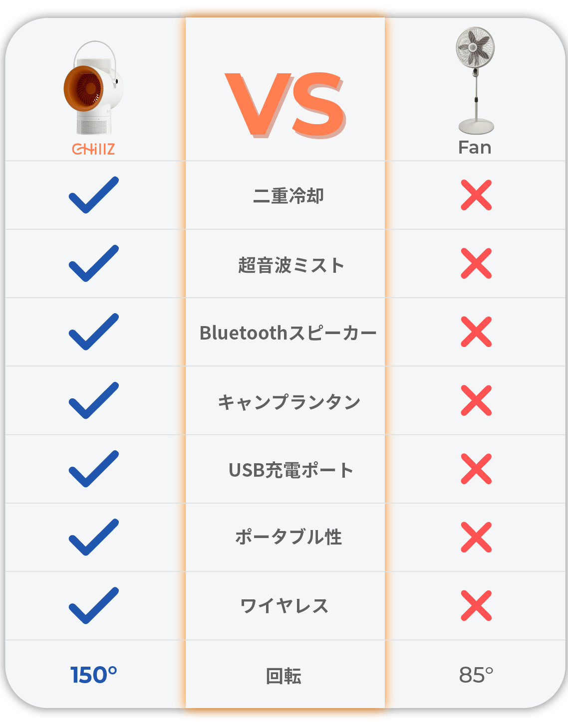 ChillZ Proは、風をダクトタービンで送り、空気の流れを加速するように精密に設計されています。そのため、直接的な冷却に優れるだけでなく、部屋の温度を下げることができます。