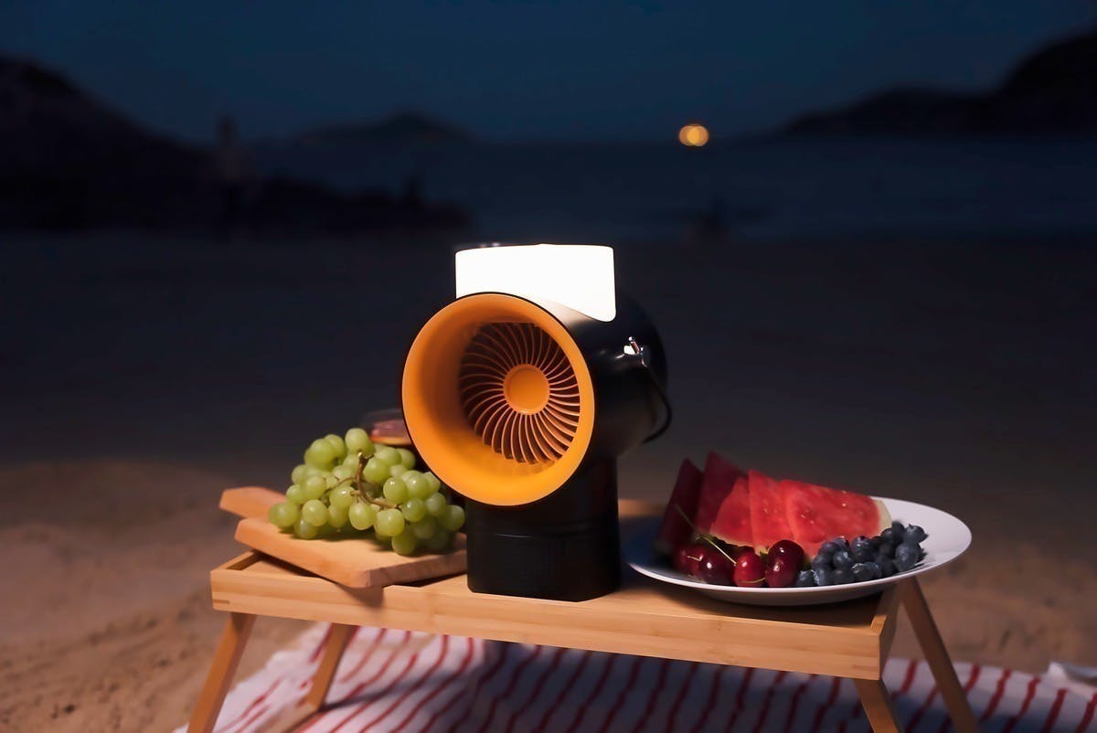ChillZ Proは1.3kgで、軽量でコンパクトです。ランタンスタイルの持ち手は、手の中に収まるようにも、枝や車の後ろに引っ掛けることもできます。ランタンのように使えますが、霧を噴射するファンやワイヤレススピーカーがすべて組み込まれています!